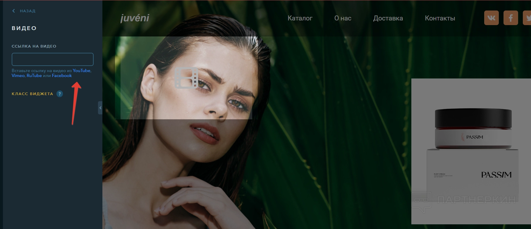 - Видео — если нужно добавить видео на страницу, можно использовать этот виджет. В настройках достаточно указать ссылку на YouTube, Facebook*, Vimeo или RuTube;