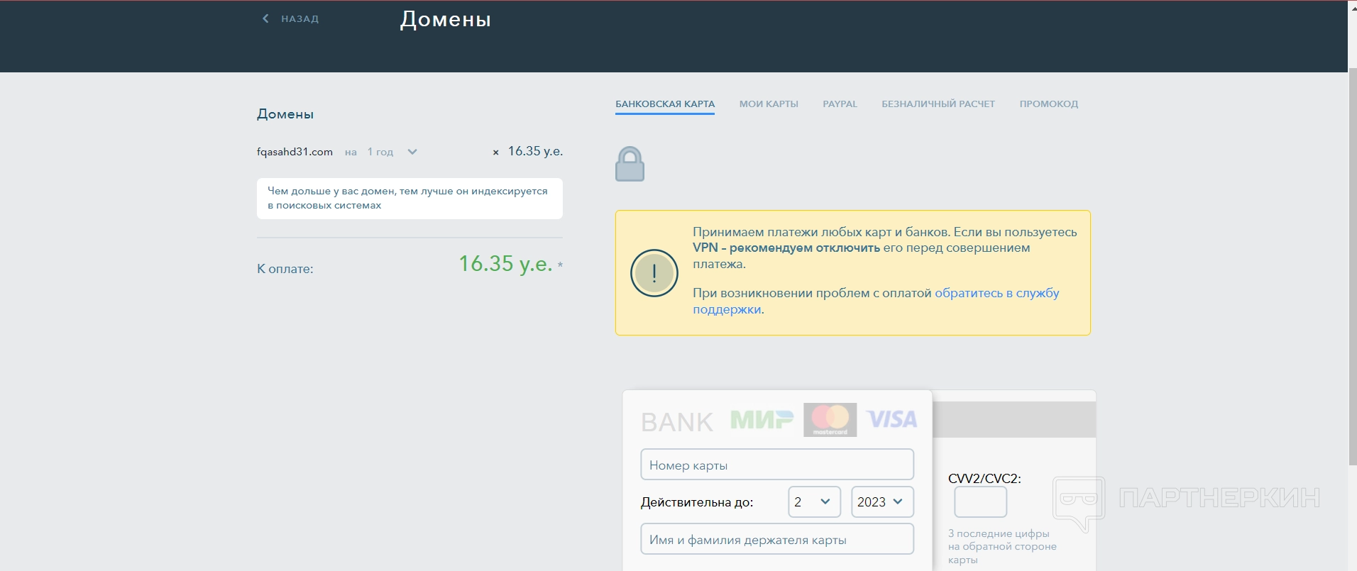 Сразу же можно перейти к оформлению заказа — для этого опять нужно нажать на «Купить» и перейти в настройки для оформления заказа. Там пользователь указывает свои реквизиты и оплачивает покупку. Домен можно купить не менее чем на год и не более чем на 10 лет.