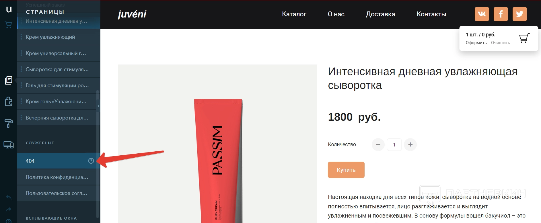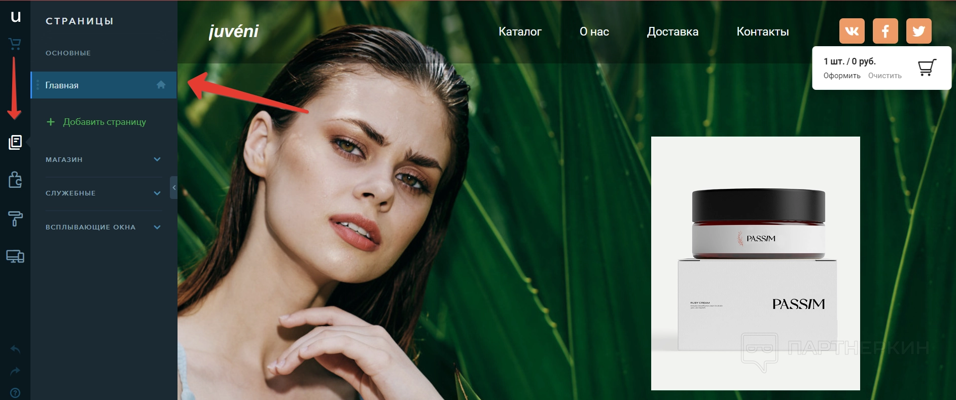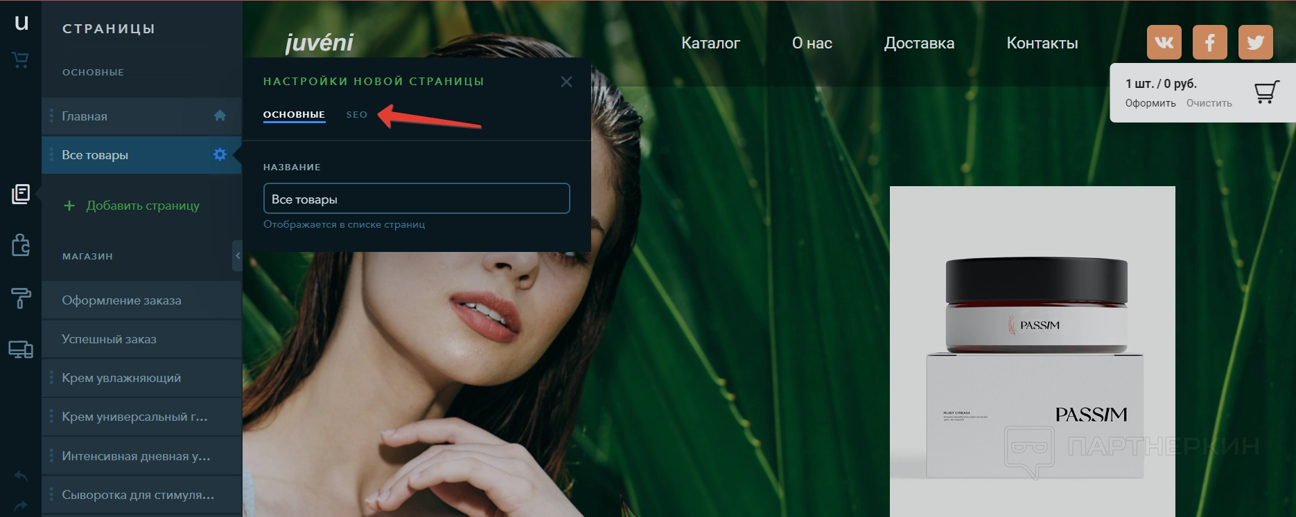 Если есть необходимость создать страницы с карточками товаров или изменить те, что в списке, придется переходить в другой раздел — он находится выше и отмечен иконкой корзины. Об этом поговорим после исследования всех последующих разделов.
