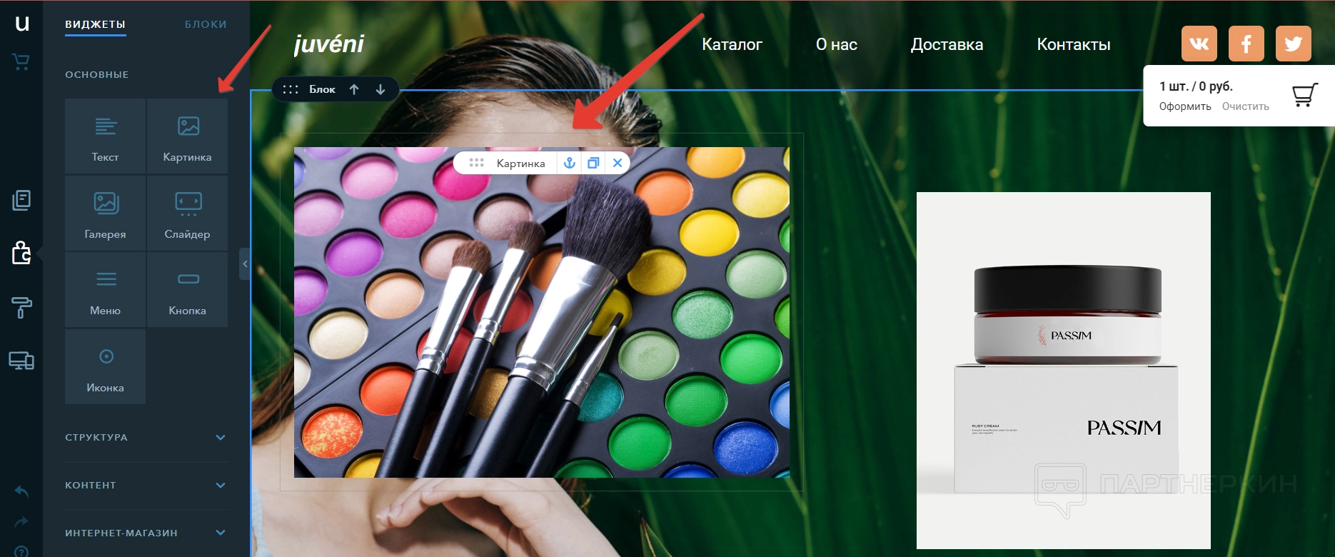 Интернет-магазин — это подраздел нужен тем, кто хочет создать сайт для своего интернет-магазина. С помощью него можно добавить на страницу виджет с карточкой товара.