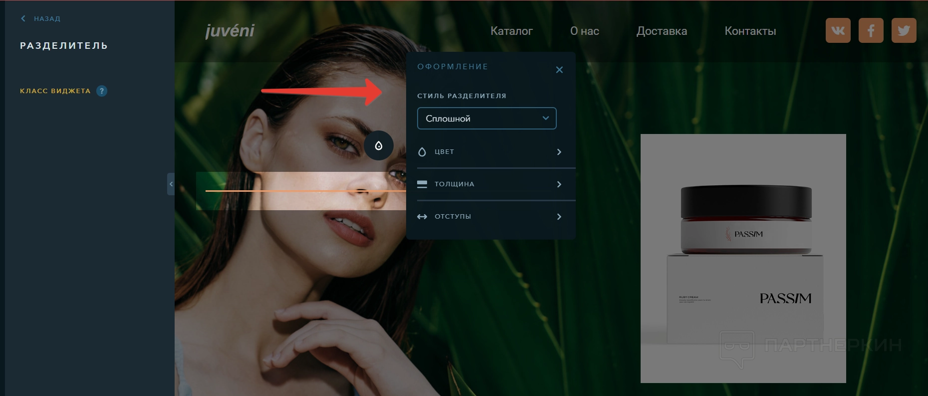 Если выбрать разделитель, то тогда можно отредактировать его оформление:
