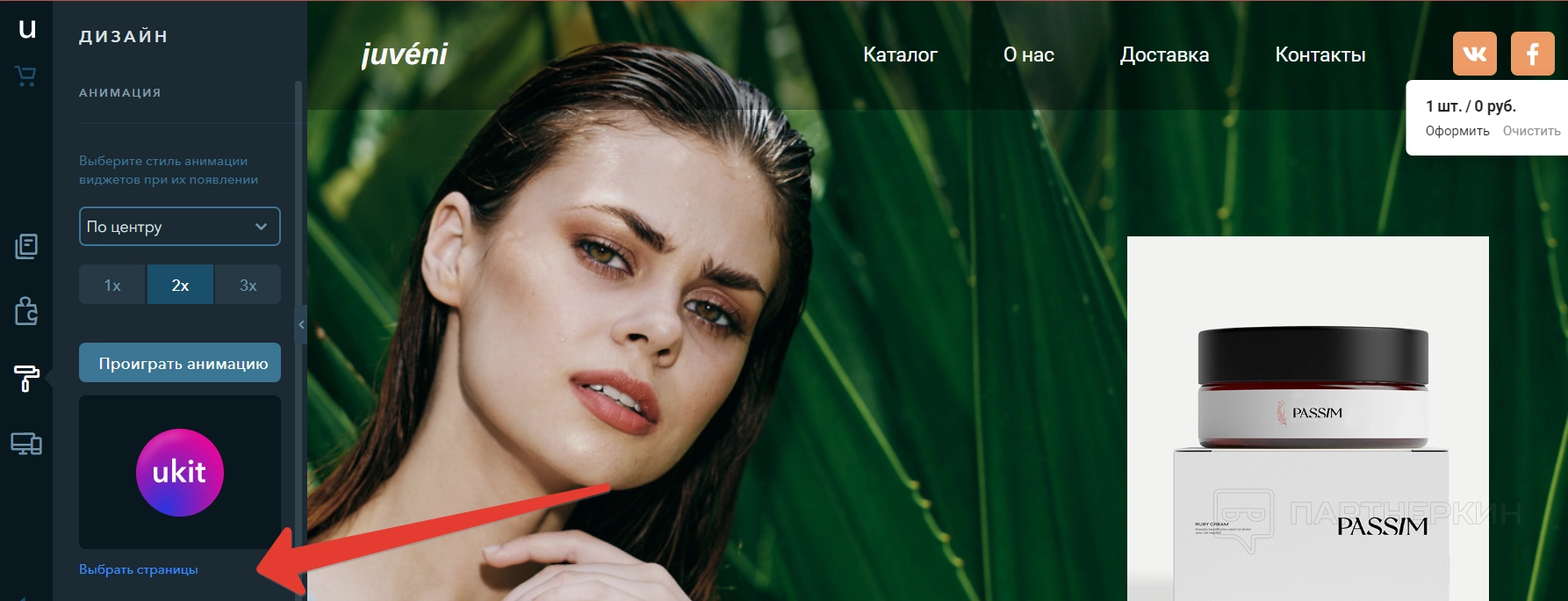 Анимация — в этом подразделе можно задать анимацию для определенных страниц по умолчанию. Чтобы ее настроить, достаточно выбрать тип — проявление, выезд, увеличение, вылет выскакивание или поворот. Также нужно определиться, справа, слева, сверху или снизу будет происходит анимация. При этом можно выбрать конкретные страницы, для которых настройка будет работать, и задать скорость самой анимации.