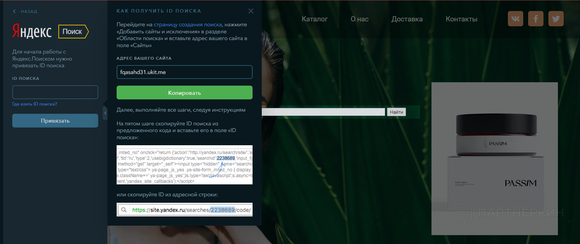 - Поиск Яндекс — на страницу можно установить строку поиска Яндекс, чтобы пользователи могли что-то искать по необходимости. Для настройки функции придется указать ID поиска — как его находить, объясняется в конструкторе;