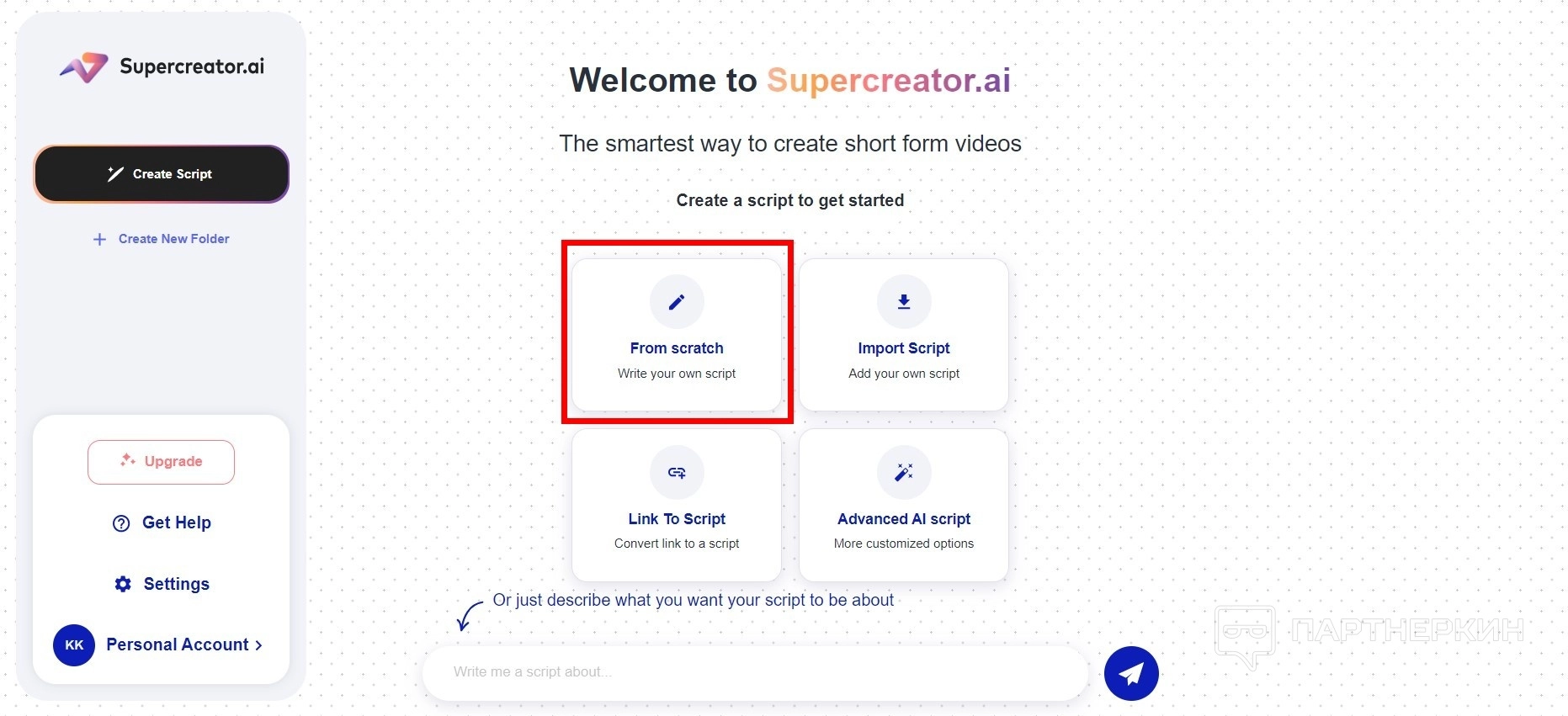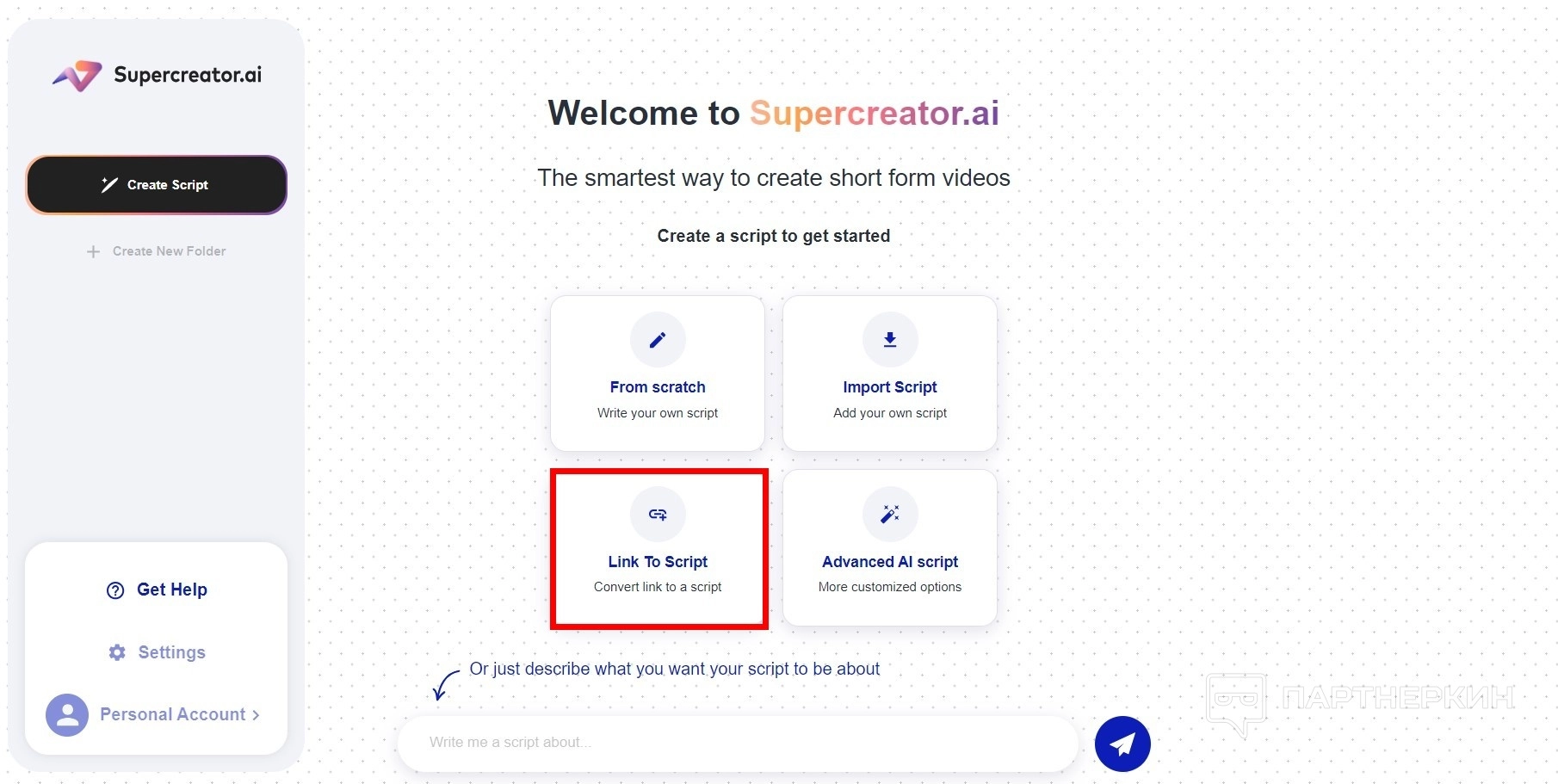 На странице сайта есть несколько инструментов для создания видеороликов. Это быстрая генерация, написание сценария с нуля, импорт собственного скрипта, преобразование ссылки в скрипт, расширенный сценарий ИИ. Рассмотрим каждый инструмент по отдельности.
