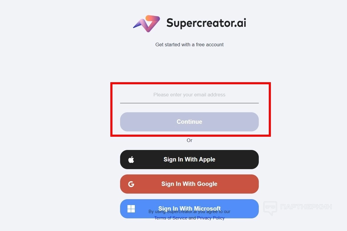 - Введите в соответствующее поле ваш email и нажмите на кнопку Continue .