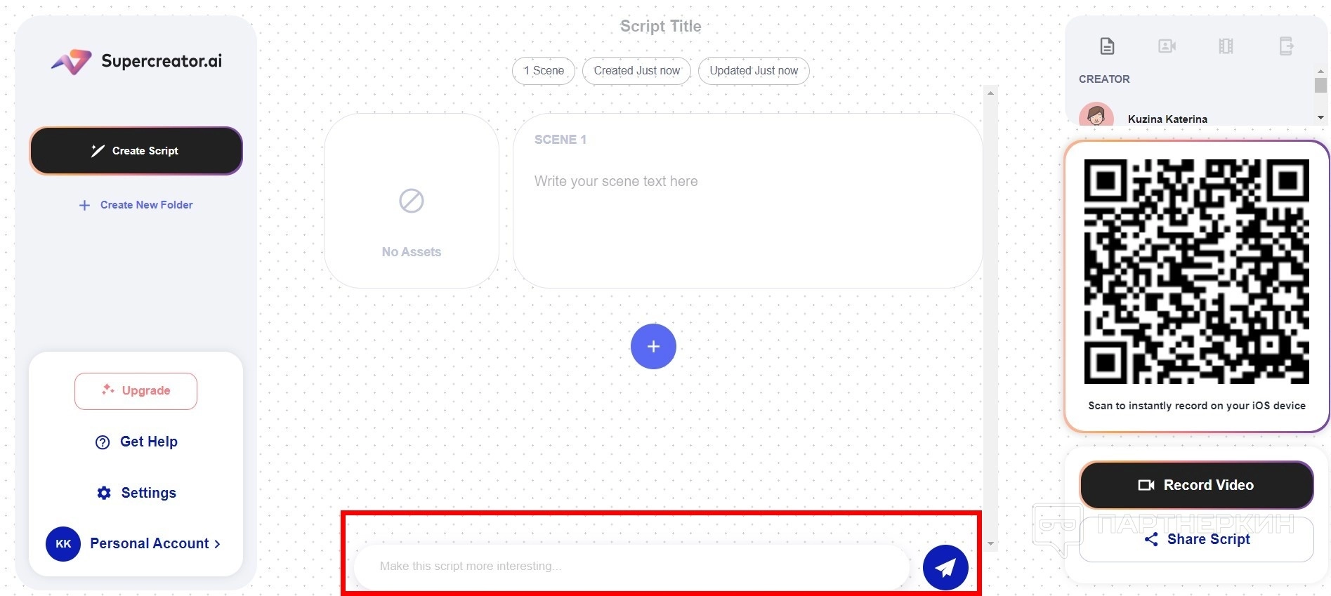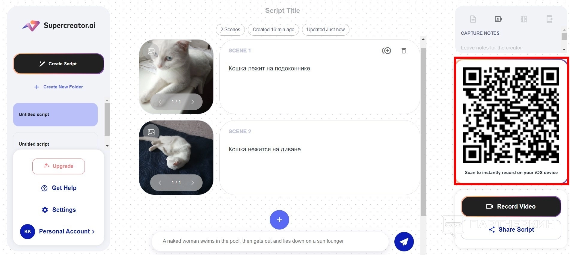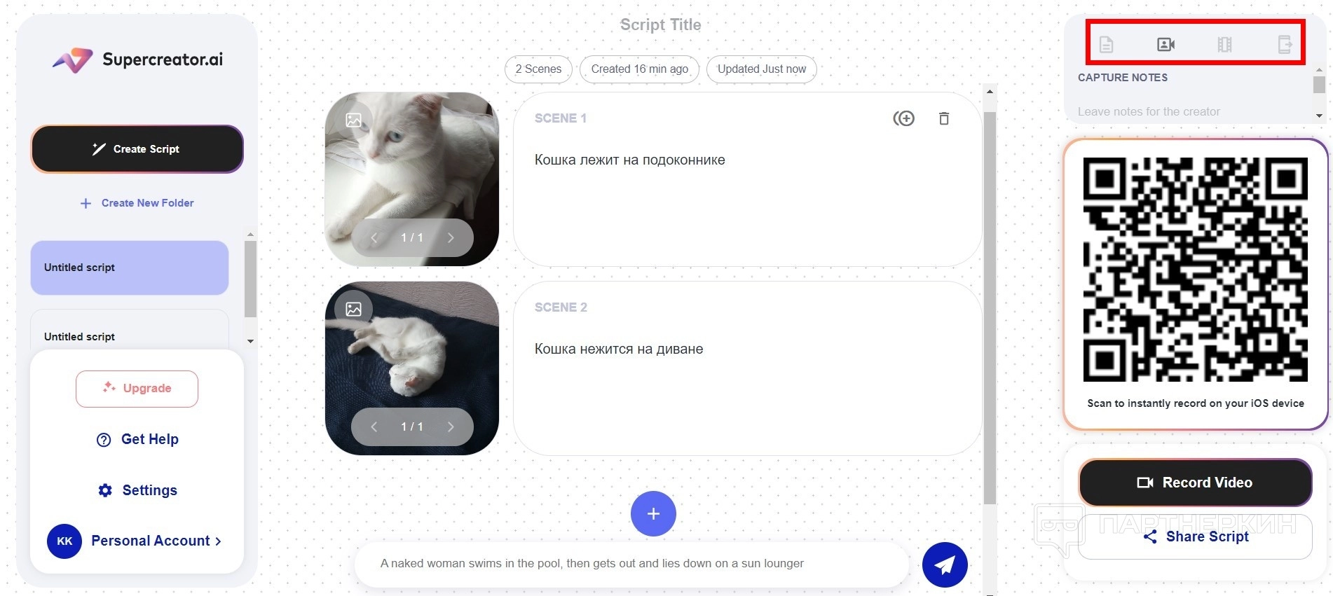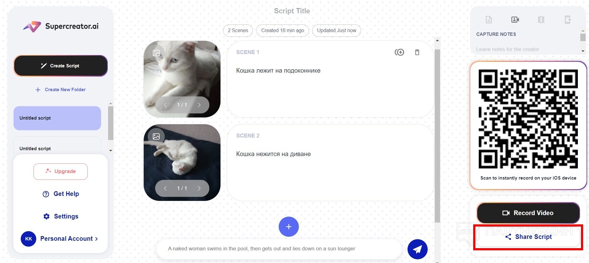 - Share Script. Отправка сценария (без видео) через ссылку.