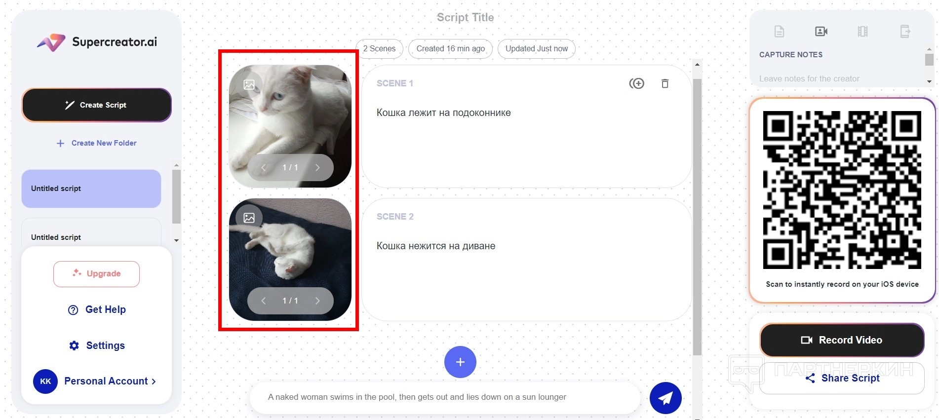 Когда вы завершите все настройки, нажмите на кнопку Submit . Нейросеть автоматически сгенерирует сценарий для видеоролика.