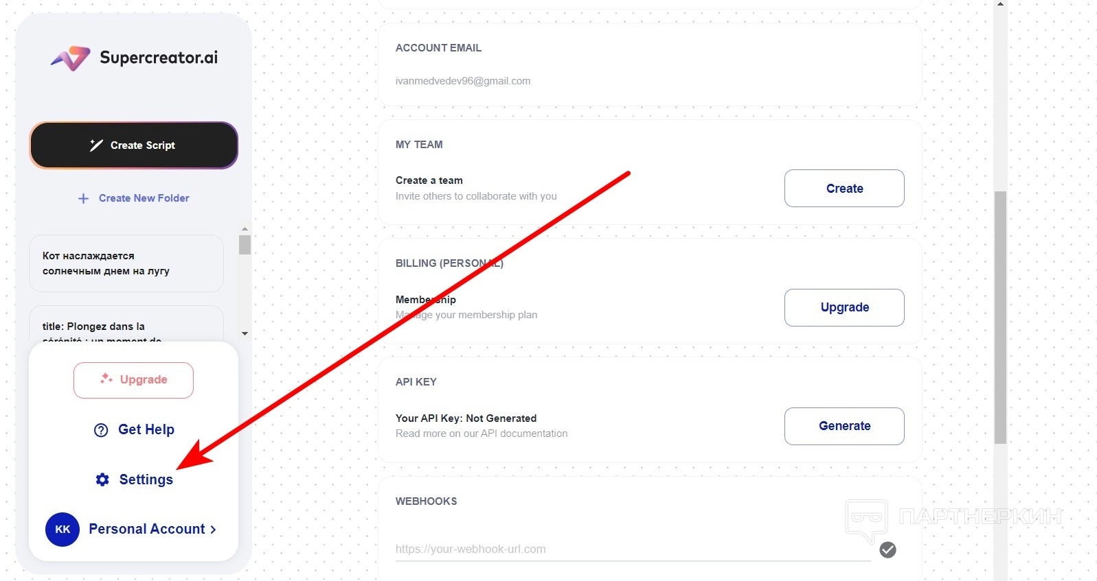 - Панель настроек. Можно выбрать стиль ролика, добавить членов команды (кто будет работать с контентом), экспортировать шаблон сценария, добавить заметки, редактировать настройки видео, смена формата и качества.