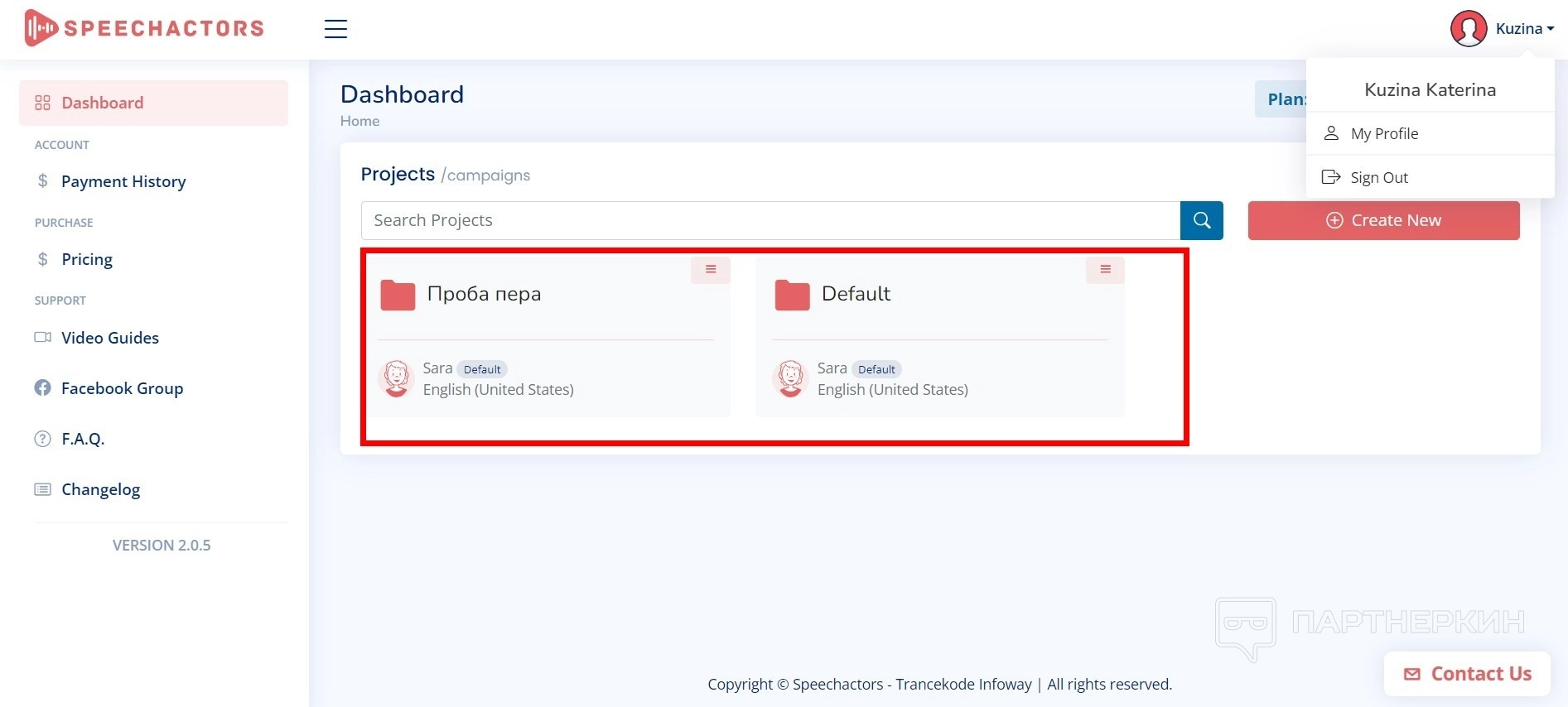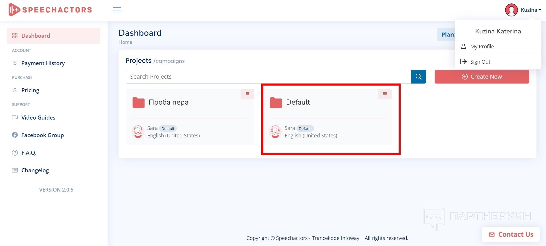 - Если будете создавать проект с нуля, укажите в форме его название, краткое описание (опционально), выберите язык и аватар (голос). После этого нажмите на кнопку Save .