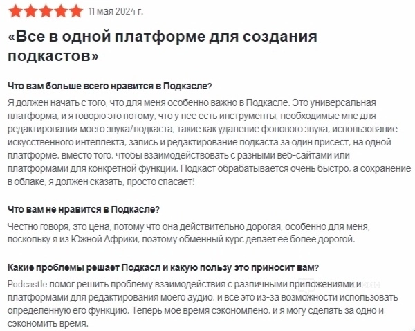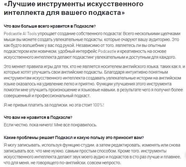 Например, пользователь Федерико Томас делится своим опытом создания подкастов с помощью инструментов редактирования записей искусственным интеллектом. Его впечатляет простой интерфейс, быстрый процесс создания аудиоряда, а также возможность улучшать качество аудио.