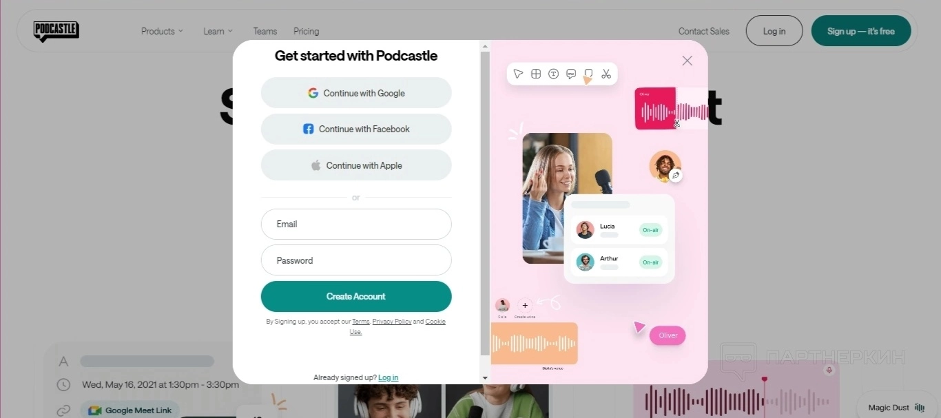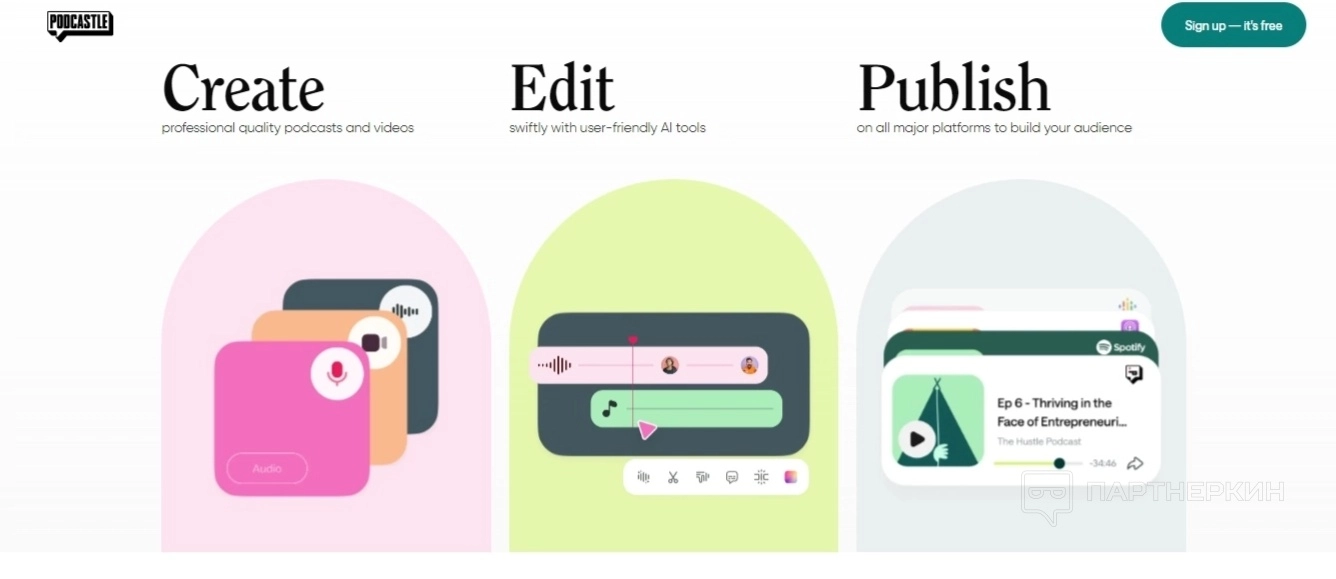 - возможность интегрировать сервис на интернет-ресурсы с помощью API, а также связать с учетными записями в некоторых социальных сетях (YouTube, Spotify, Google Podcasts, Apple Podcasts, X и Instagram*) для прямого постинга готового контента.