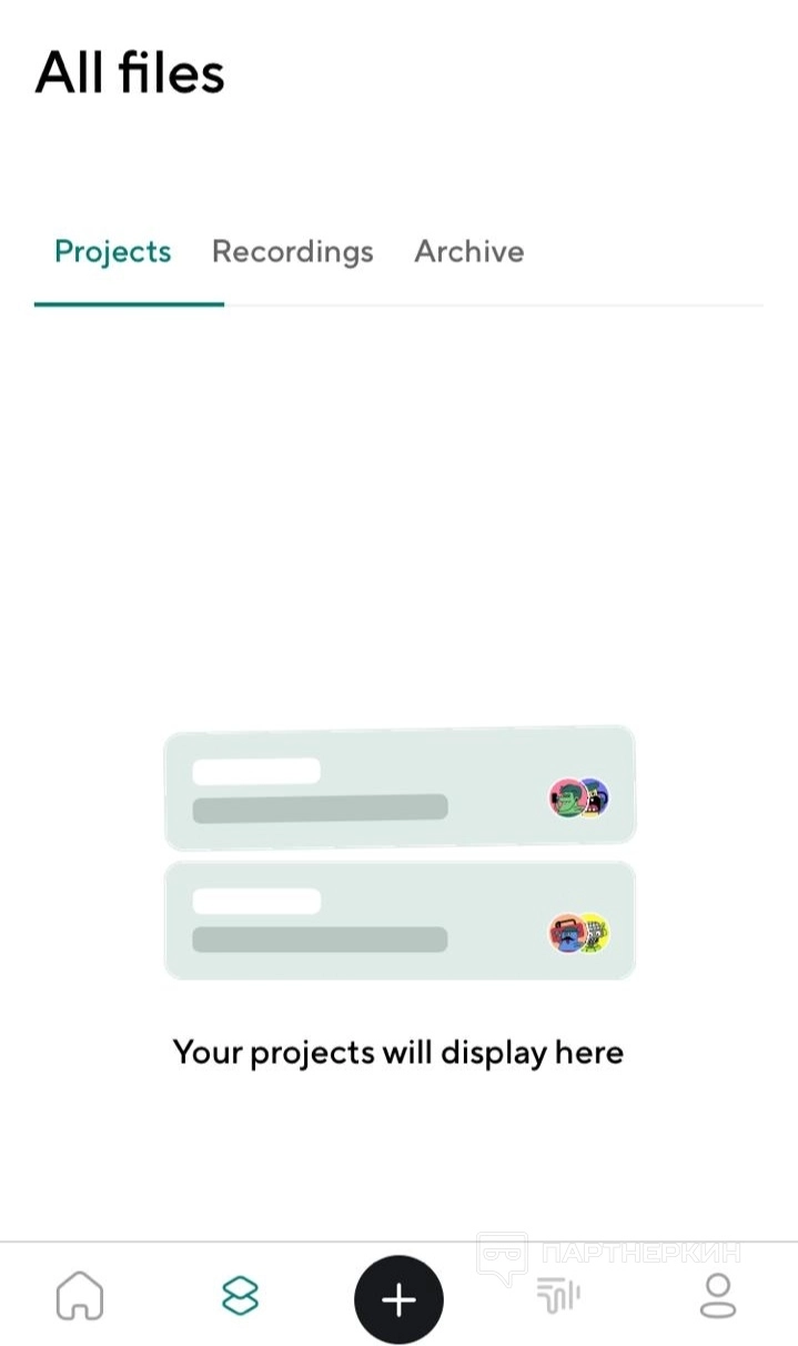 системе. Именно отсюда можно начать работу с уже существующими проектами (Projects) или записями (Recording);