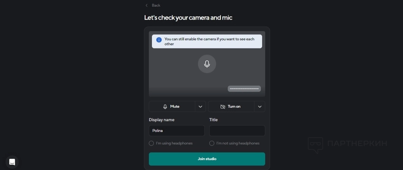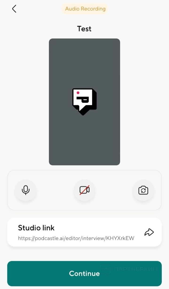 Далее настраиваем микрофон и камеру. На этом этапе можно скопировать ссылку на будущий подкаст и поделиться ею в любых социальных сетях, мессенджерах или площадках.