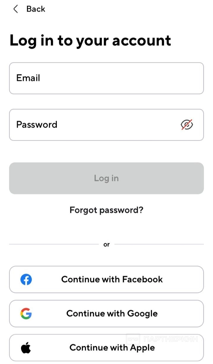 После скачивания и установки приложения пользователь может пройти авторизацию в уже существующем аккаунте или зарегистрироваться с самого начала. Сделать это можно теми же способами, что и в веб-версии: вручную или с помощью Facebook*, Google или Apple.