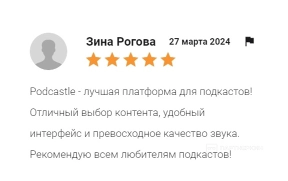 Пользователь Зина Рогова в своем отзыве отмечает простой и удобный интерфейс, качество звука и наличие библиотеки аудио контента для работы: