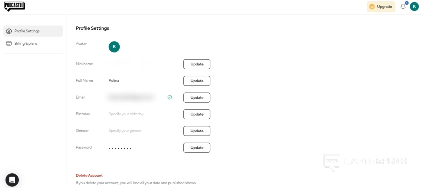 - profile settings — здесь можно изменить пароль доступа, персональные данные, указать свой пол и день рождения или деактивировать профиль;