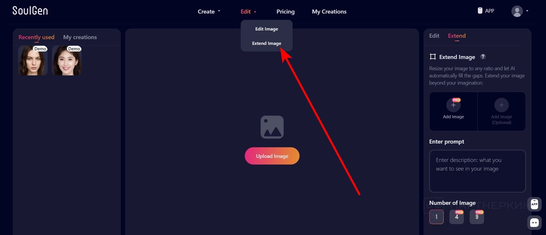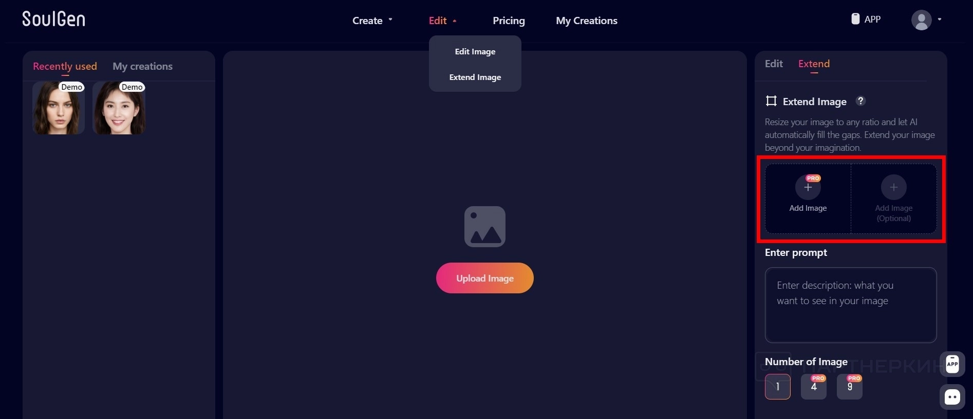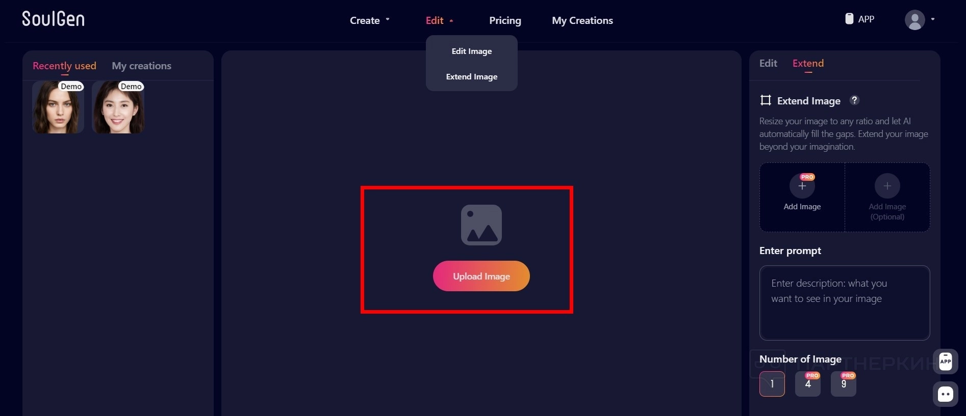 - Перейдите во вкладку Edit / Extendet Image .
