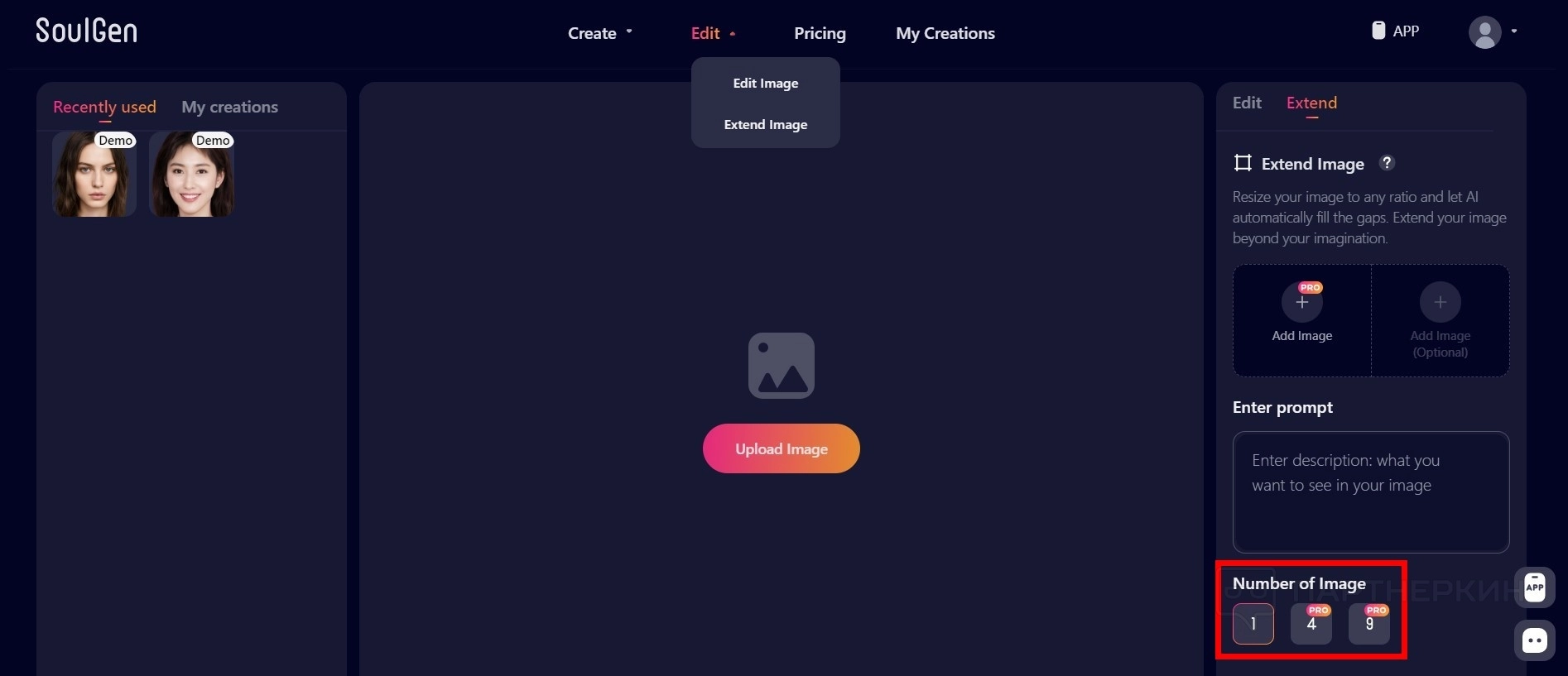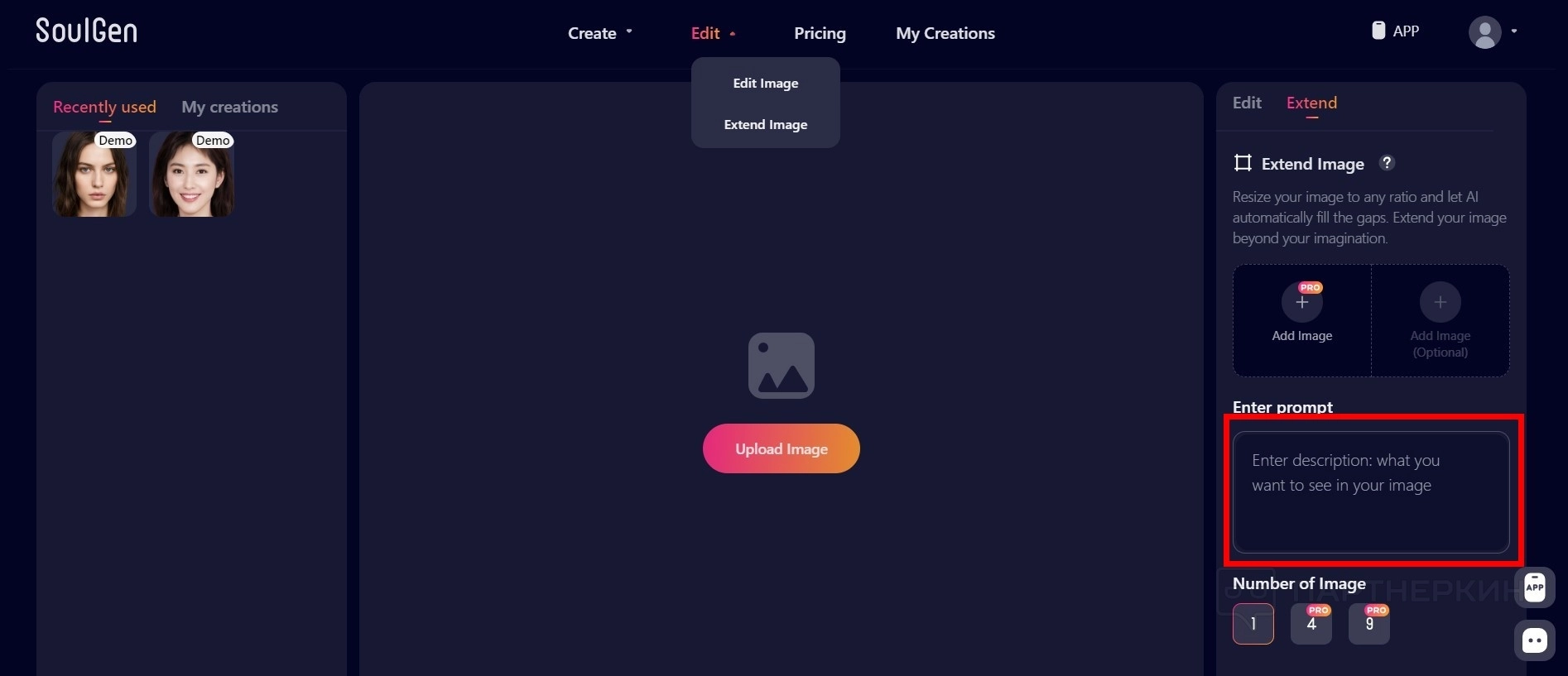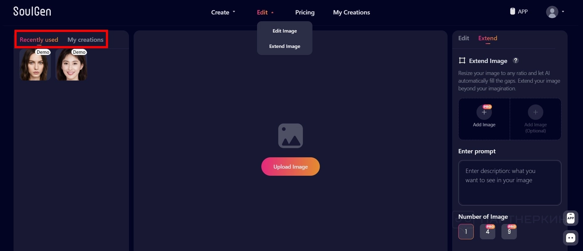 - Перейдите во вкладку Edit / Extendet Image .