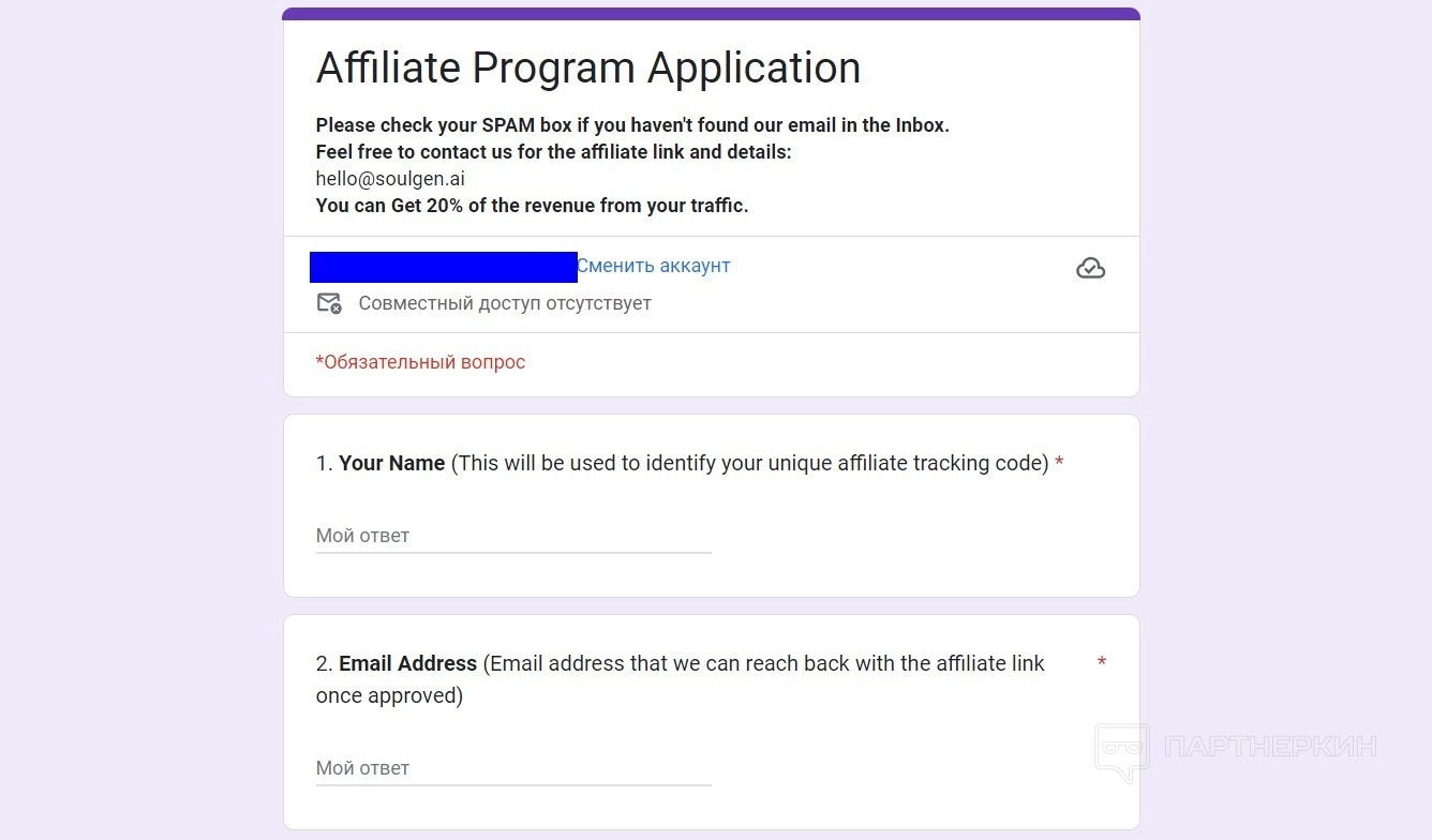 Чтобы стать партнером, необходимо заполнить анкету и отправить данные администрации