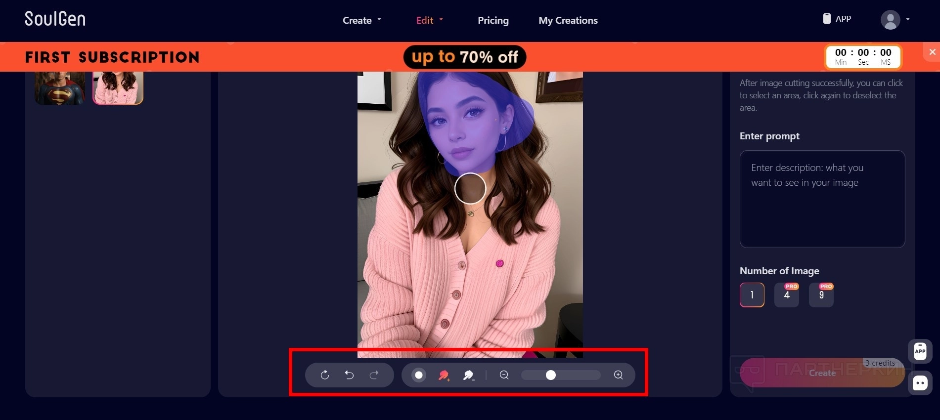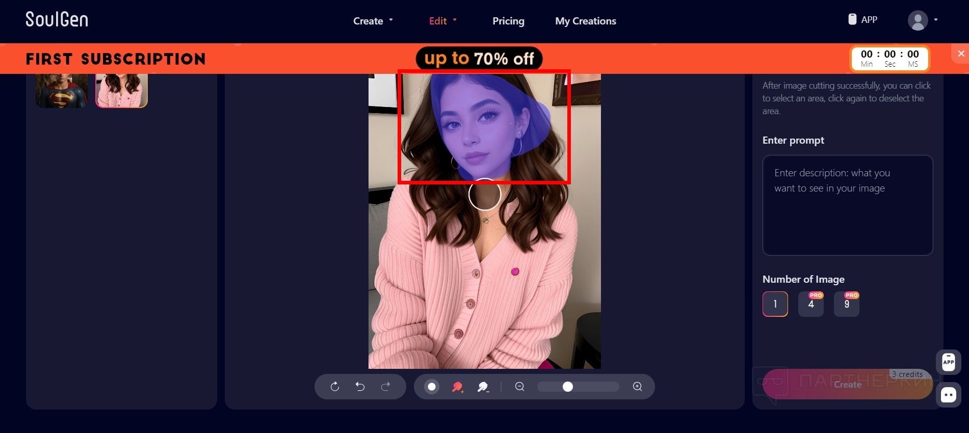 Изображение меняется в течение нескольких секунд. Каждая обработка стоит 3 кредита.