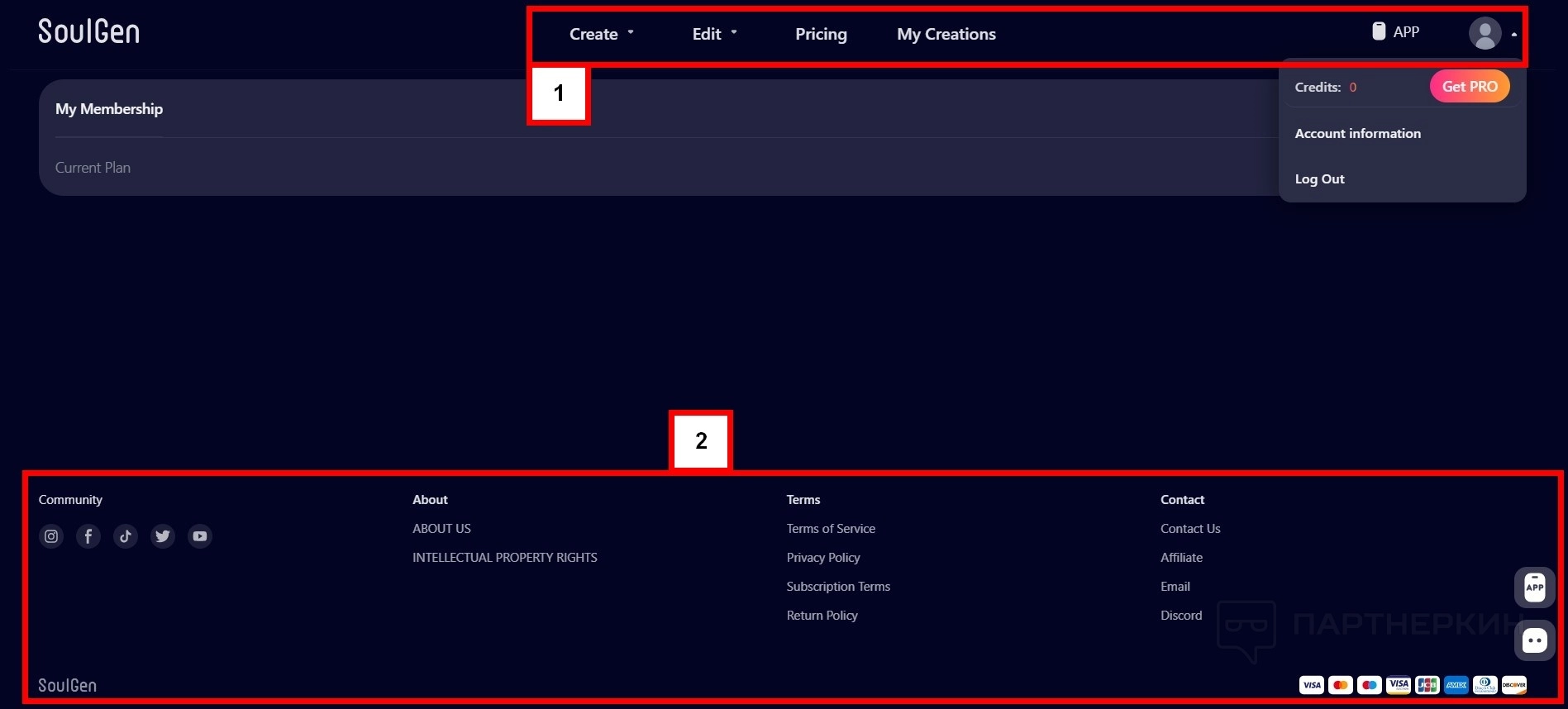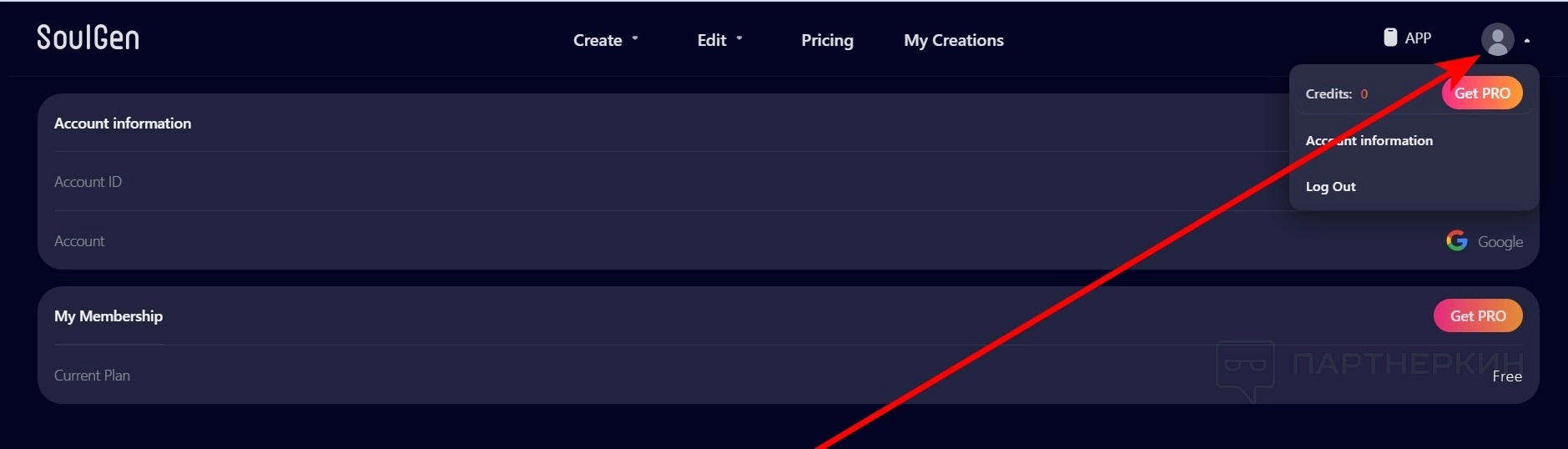 В личном кабинете также небольшой выбор настроек. Можно изменить план, скопировать свой ID, пополнить баланс, узнать количество кредитов.