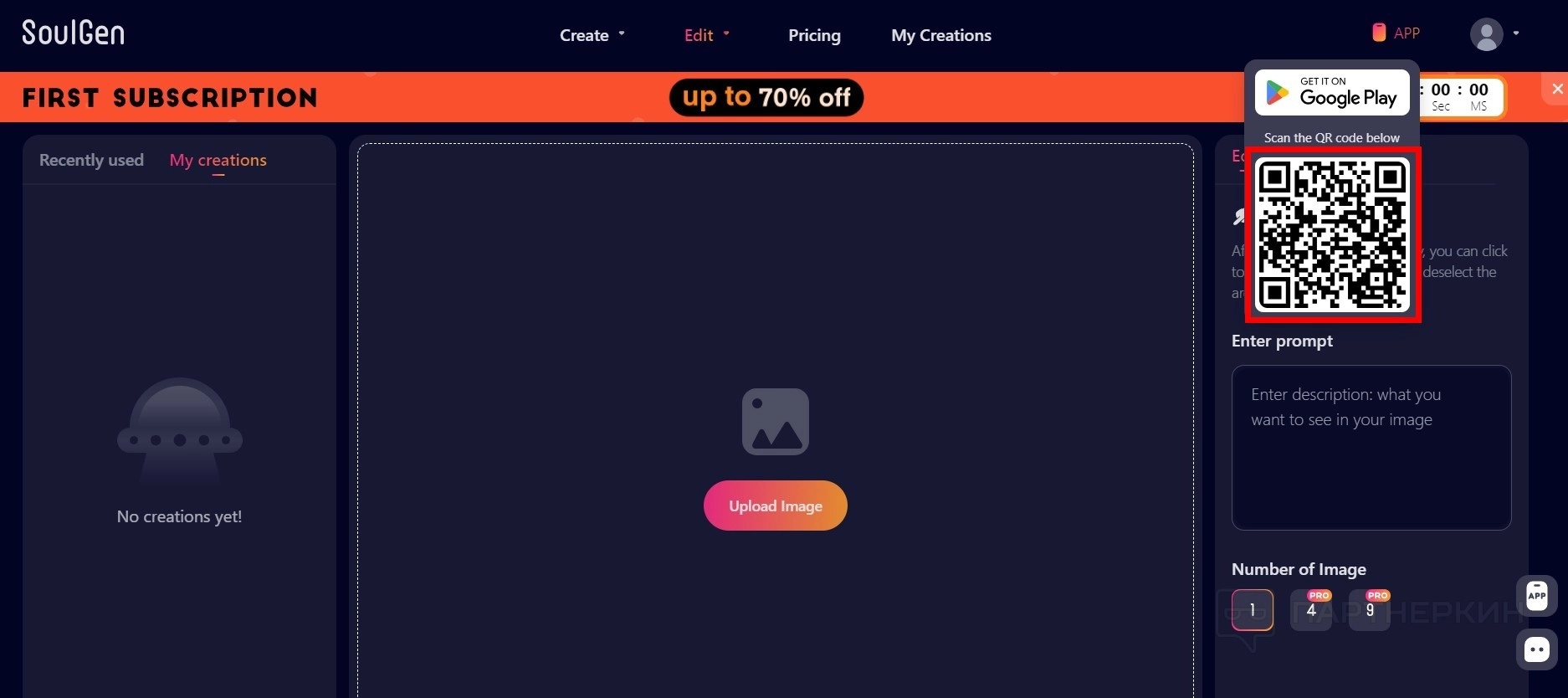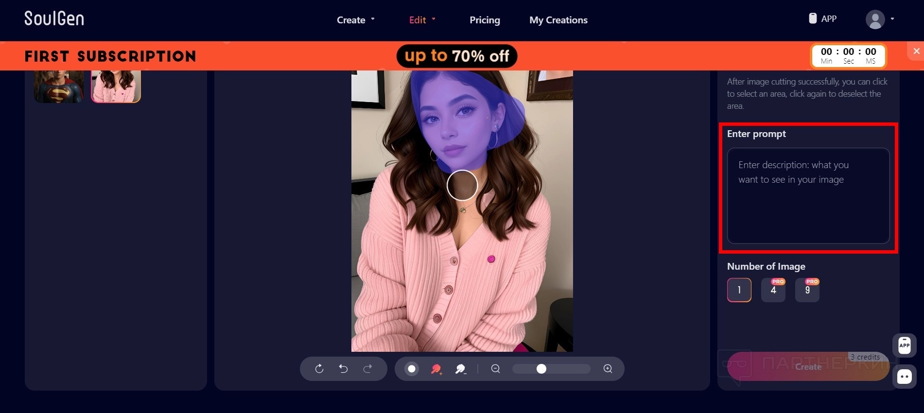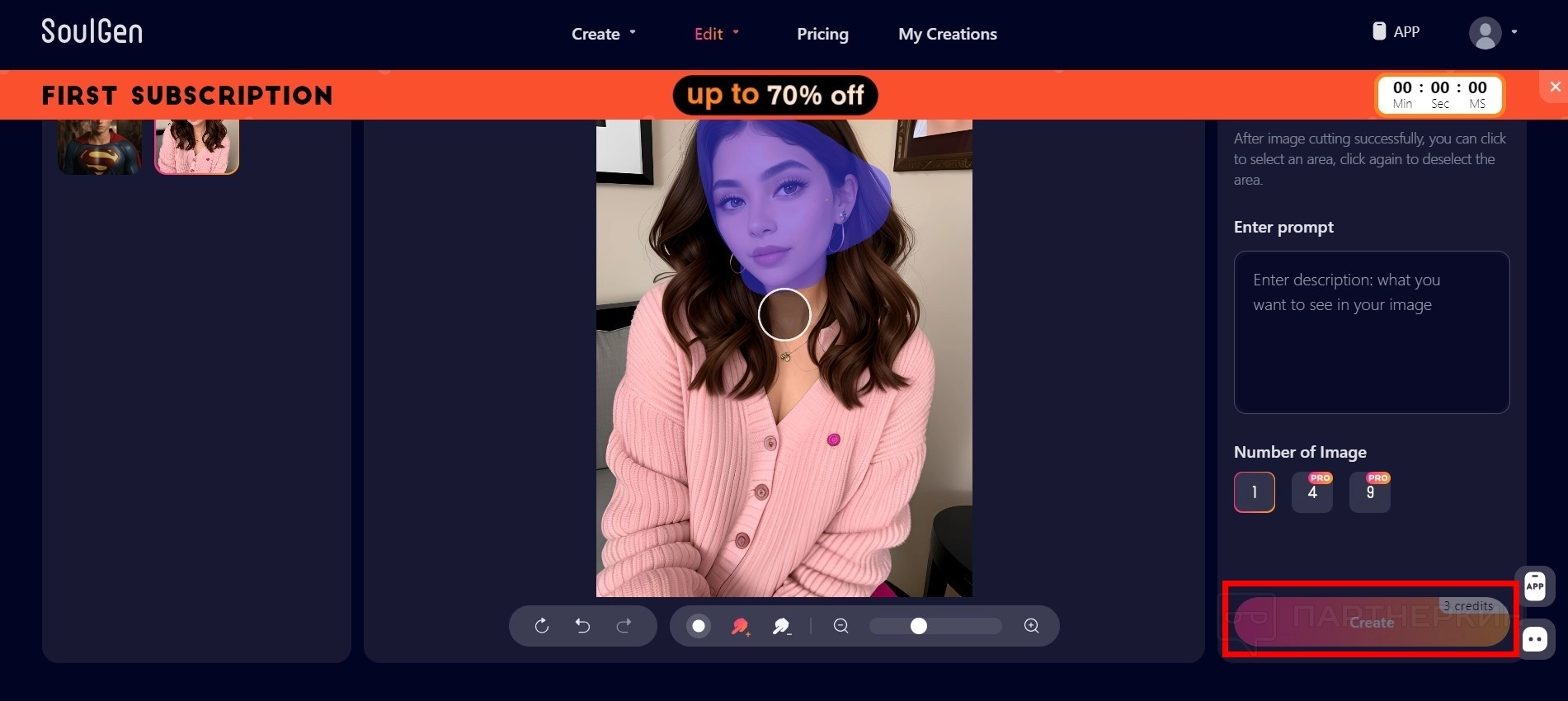 - Нажмите на кнопку Create . Одна генерация стоит 1 кредит.