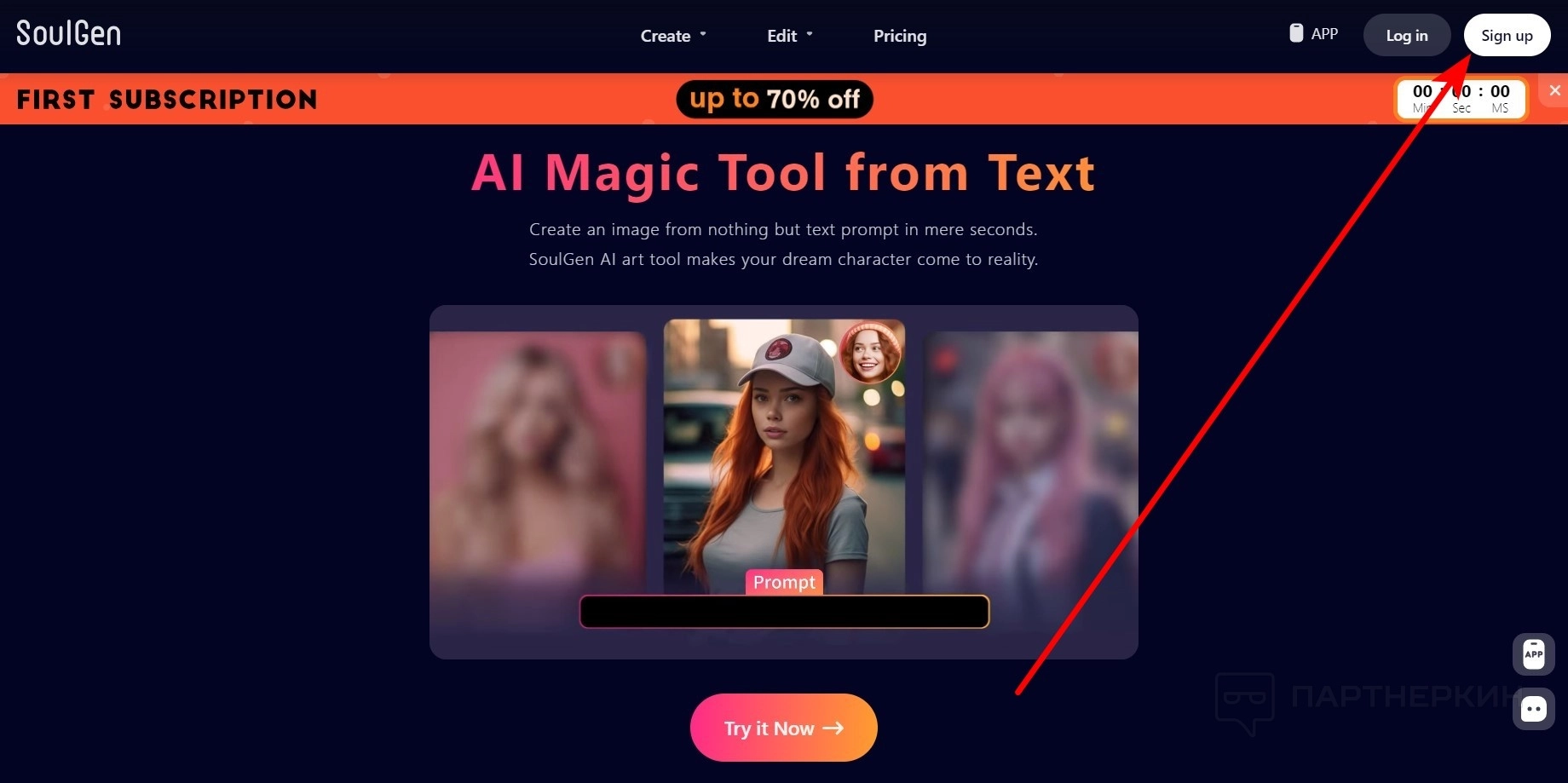 - На главной странице нажмите на кнопку Sign up .