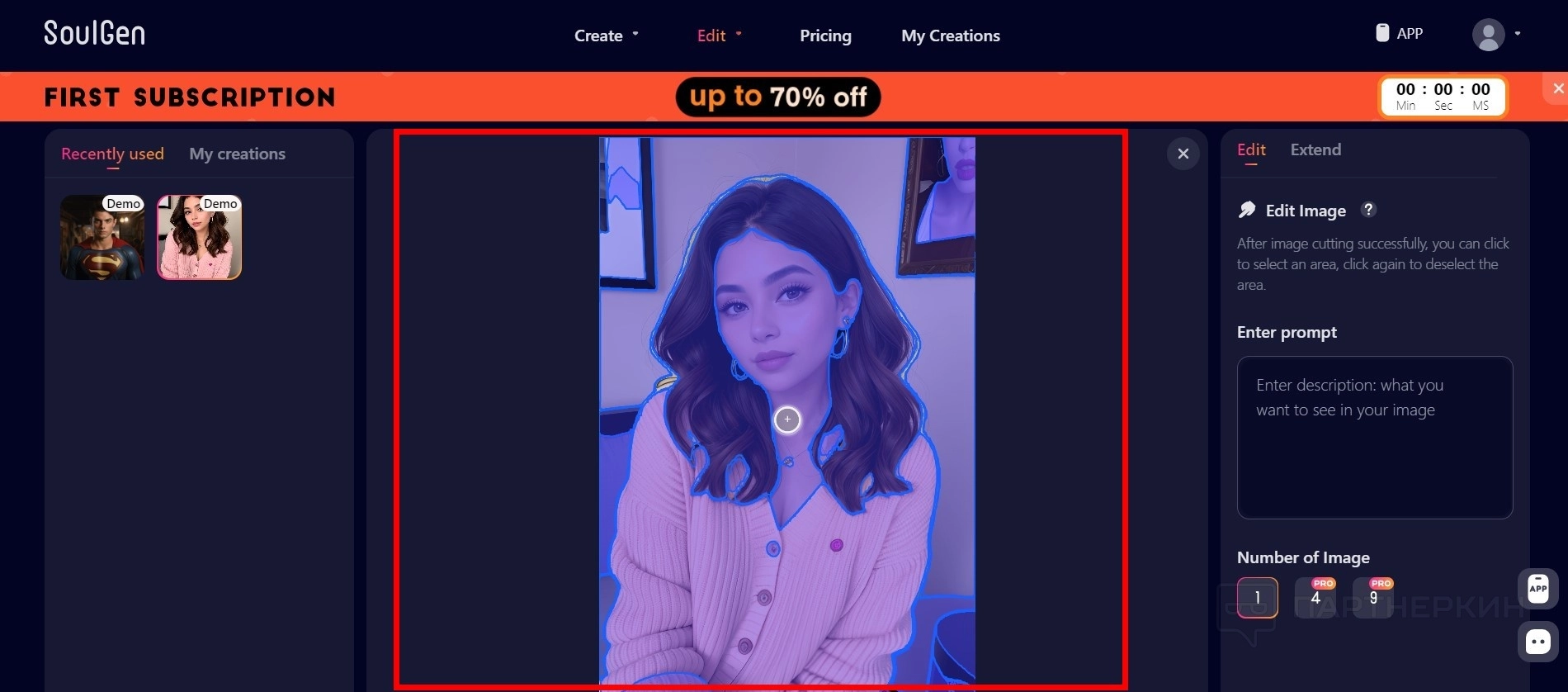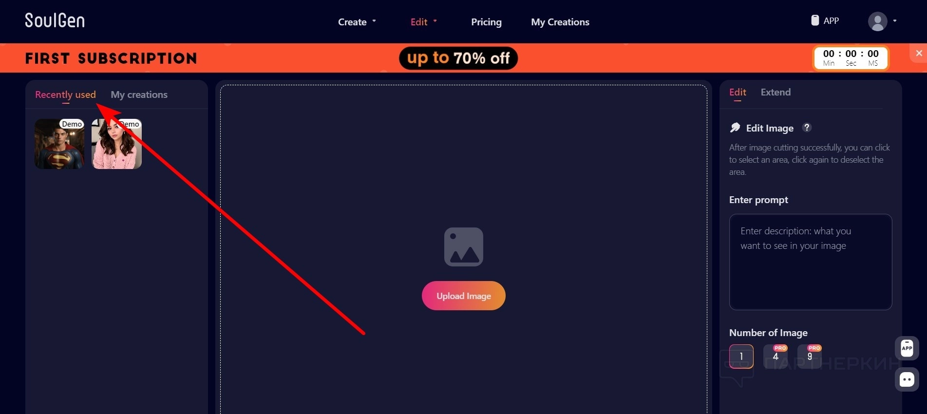 - Можно использовать персонажей, которых вы уже сгененировали. Изображения находятся во вкладке Recently used или My creations .