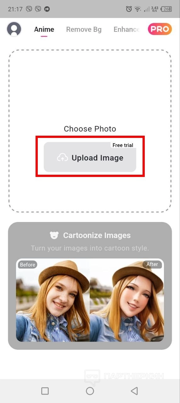 - Выберите фото из своей галереи, нажав на кнопку Upload Image .