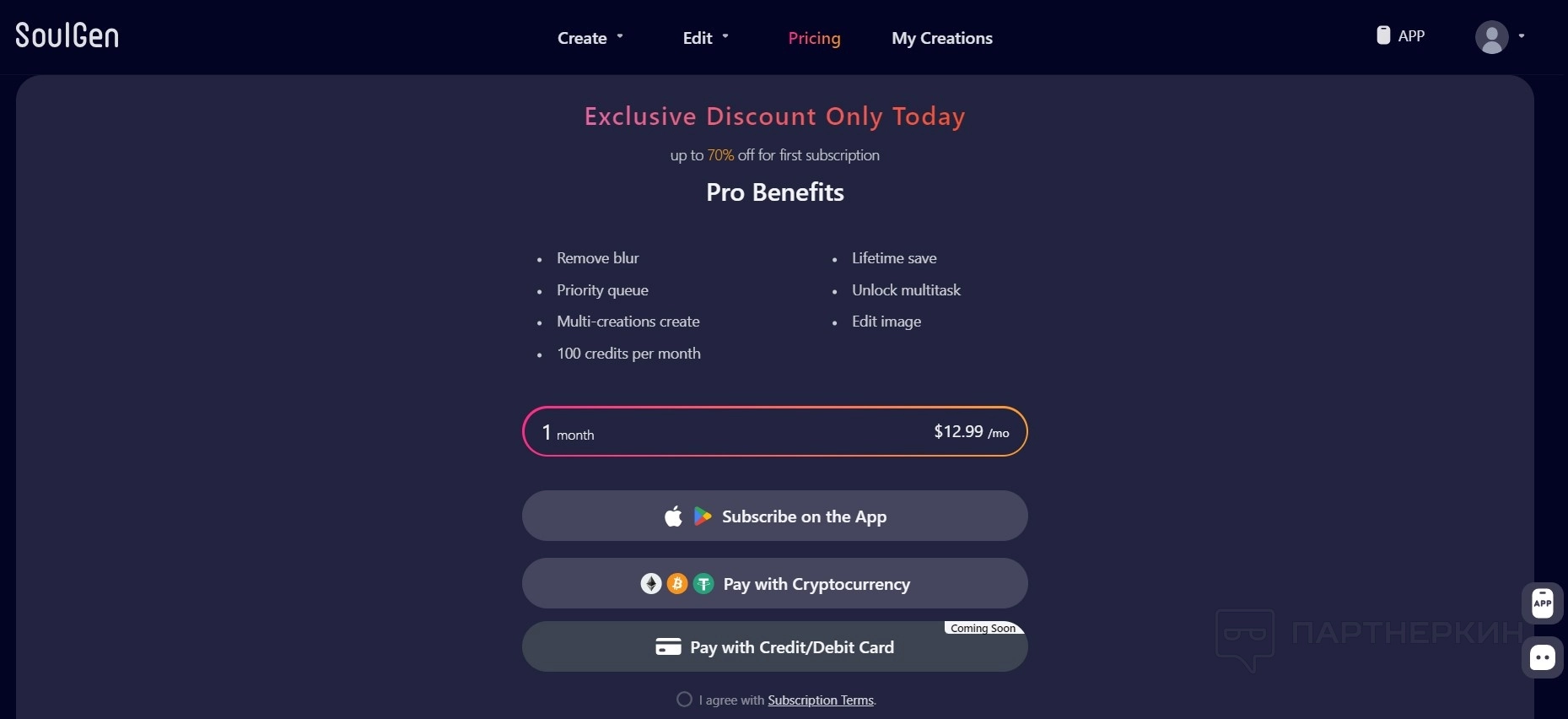 Подписавшись на PRO-версию, пользователи получают доступ к расширенным возможностям сервиса. При этом предоставляется скидка в размере 70% на первую подписку. Для активации тарифа PRO система привязывает к аккаунту банковскую карту или электронный кошелек, с которых каждый месяц автоматически списывается плата за использование сервиса. Отменить подписку можно в любой момент.
