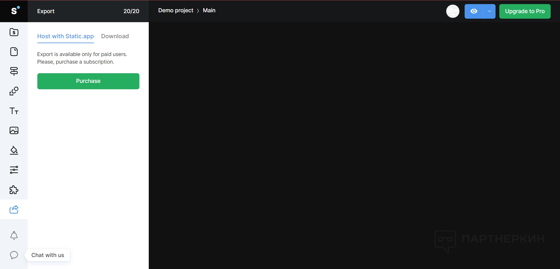 - 20 экспортов в месяц: возможность экспортировать готовые веб-сайты в различные форматы для публикации;