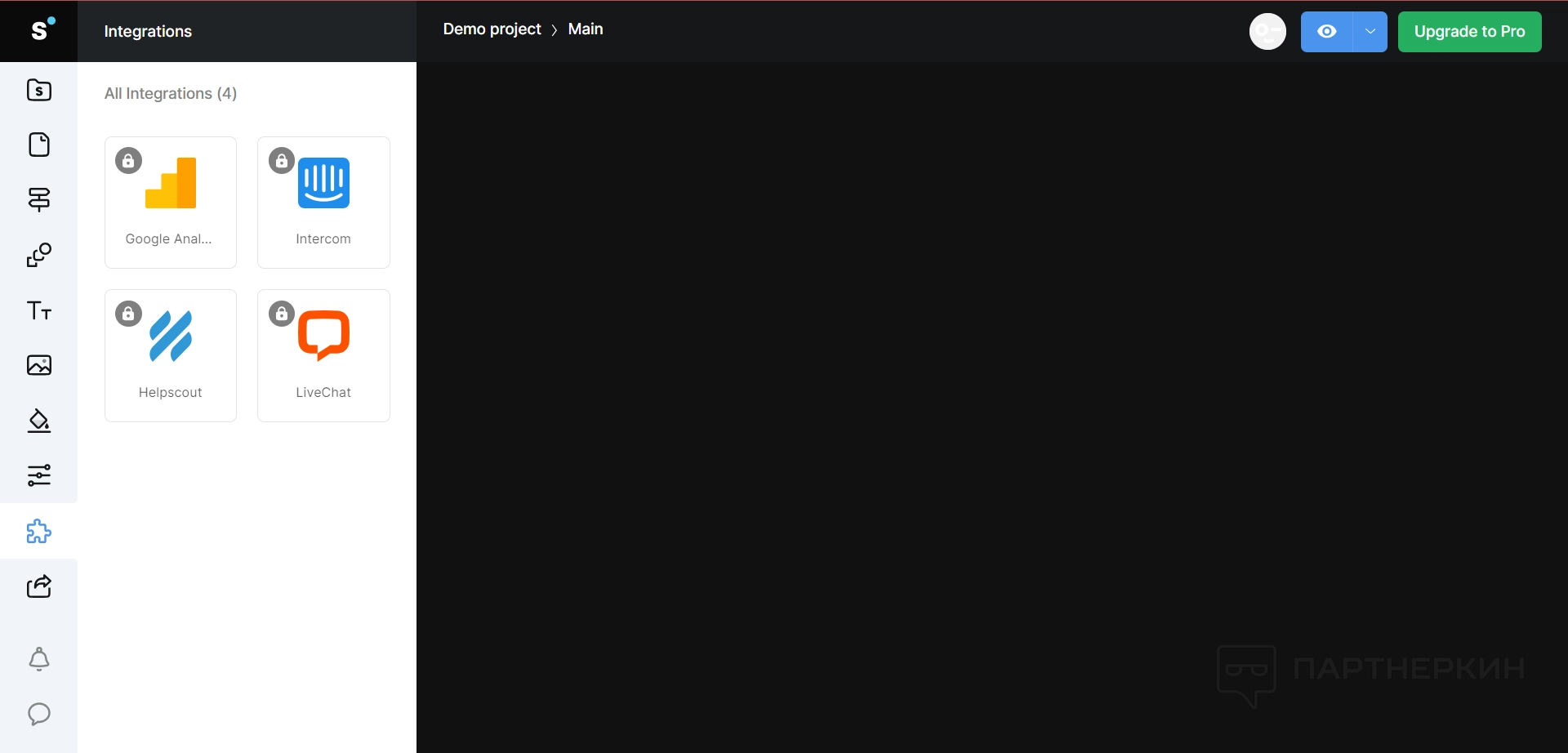 В разделе пользователи могут интегрировать сторонние сервисы и приложения в свой веб-сайт.