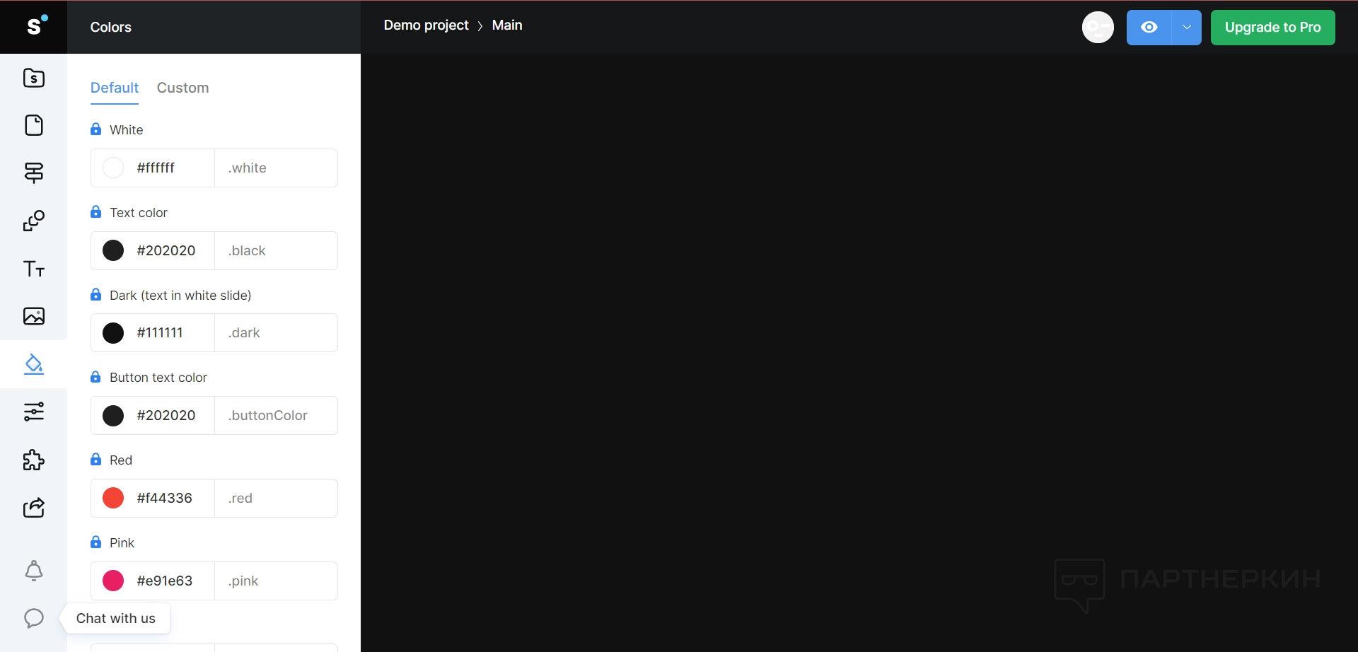 В разделе пользователи могут настраивать палитру цветов для своего веб-сайта.
