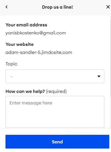 Если необходимо связаться со службой техподдержки, кликаем на кнопку в правом нижнем углу и в специальной форме задаем вопрос.