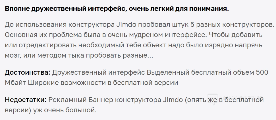 - Jimdo подходит для создания сайтов-визиток, семейных блогов и других личных проектов.