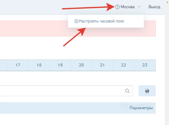 Чтобы сменить часовой пояс, поднимаемся в верхний правый угол, кликаем на часики и выбираем «Настроить часовой пояс».