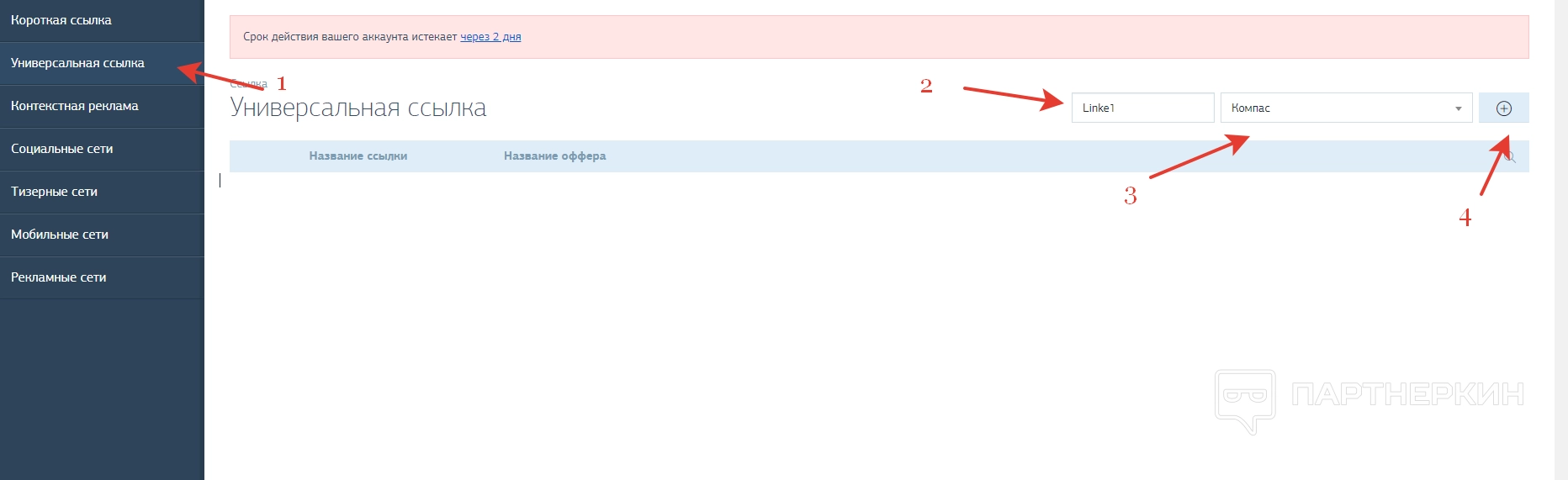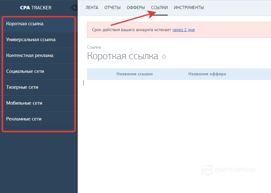 Добавленный в систему оффер открывает возможность отслеживать переходы.  Только для начала нужно потребуется специальная ссылка, которую можно будет создать в разделе «Ссылки».
