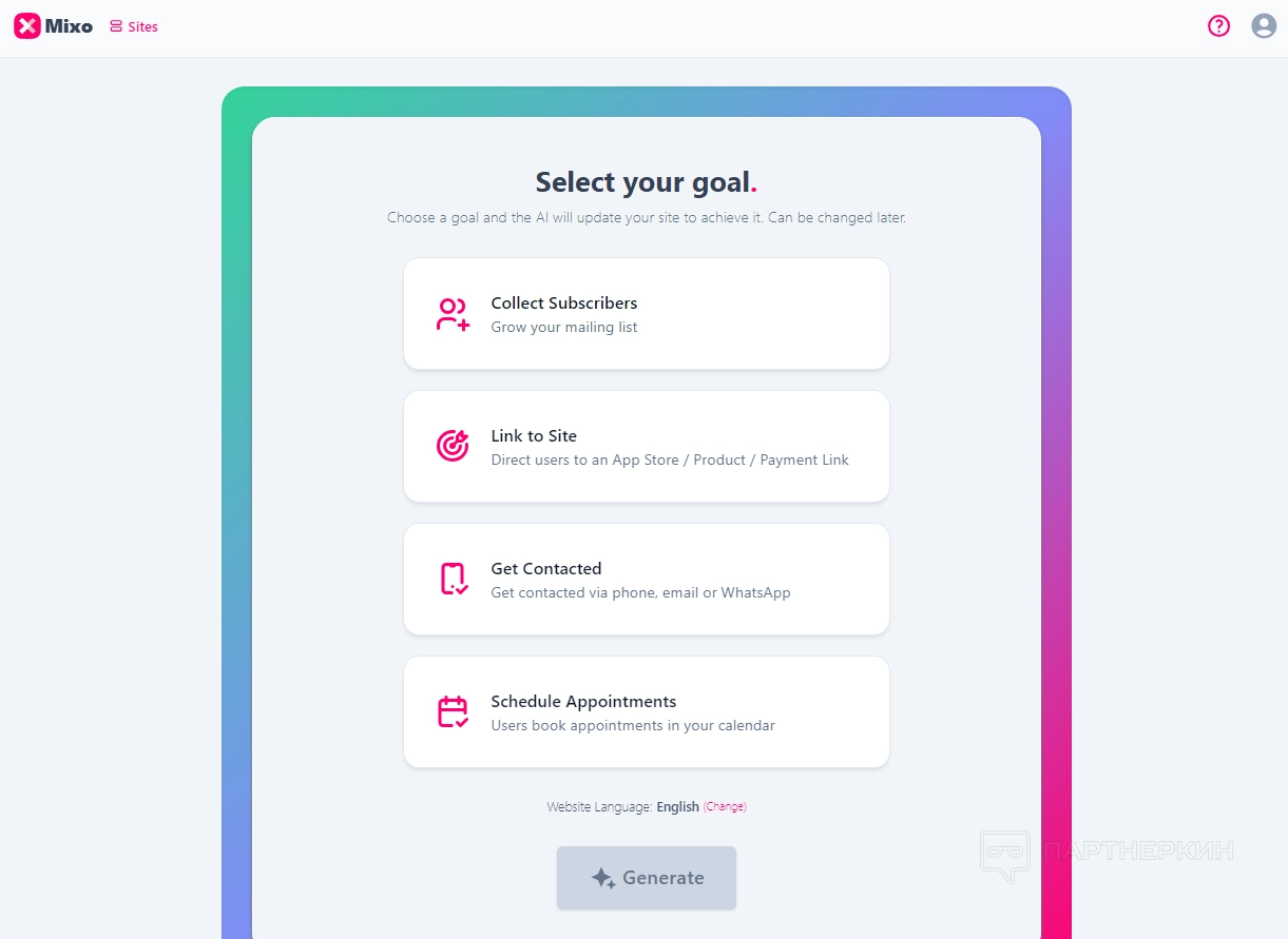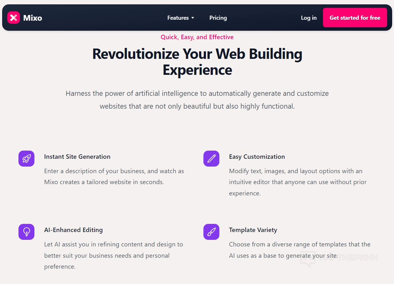 Mixoможно запустить полноценный сайт буквально за считанные минуты.