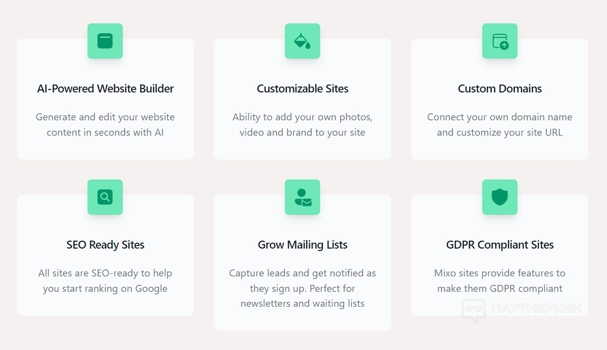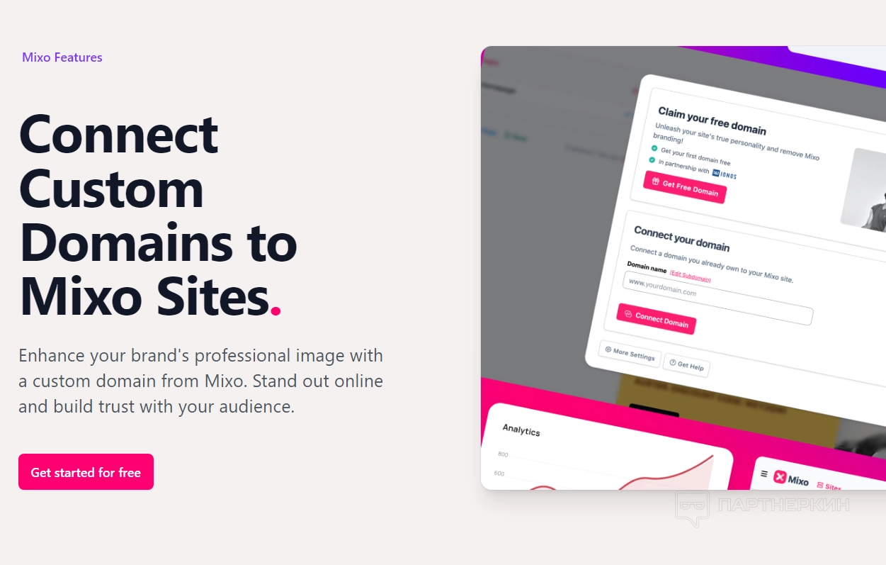 - Basic Site ($4 в месяц). Включает создание одностраничного сайта, возможность использования пользовательского домена и встроенный SSL сертификат для обеспечения безопасности. При этом на сайте отсутствует бренд Mixo, а также предоставляется бесплатный домен на 1 год.