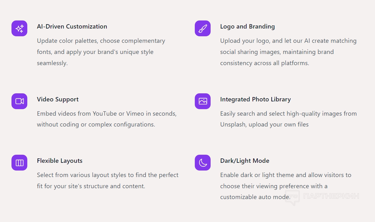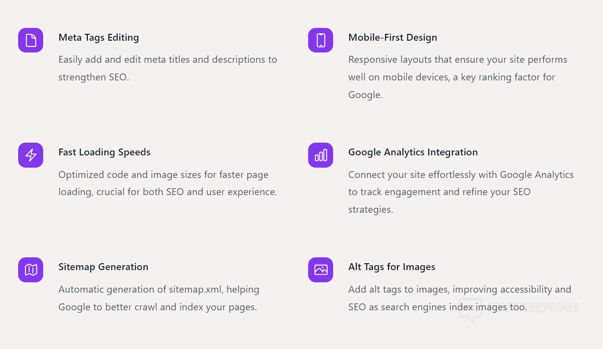 - Эффективность. Встроенные инструменты SEO и маркетинга помогают клиентам сделать бизнес более успешным.