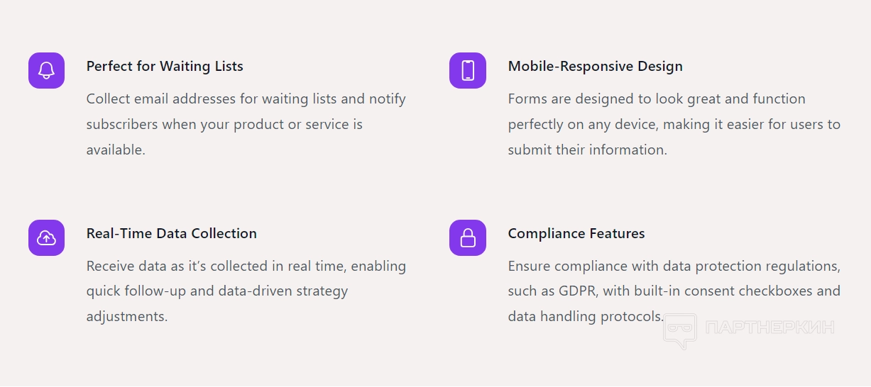 С помощью встроенных инструментов можно собирать электронные адреса и создавать рассылки. Функция как раз пригодится для маркетинговых кампаний.