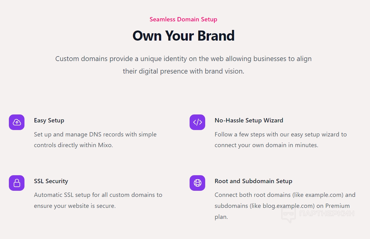Сервис обеспечивает простые настройки при использовании мастера. который упростит процесс настройки личного домена. Никаких технических знаний от пользователей не требуется. Также