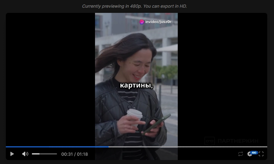 Всего за 7 минут мы поручили ролик с хорошим введением, интересной основной частью и крутым заключением. На написание сценария, озвучку, поиск футажей, добавление субтитров и полный монтаж видео ушло бы 4-6 часов. Invideo экономит невероятное количество времени!