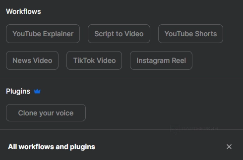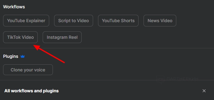 В нижней части страницы вы можете выбрать площадку, для которой собираетесь создавать видео (или формат, например, News Video): YouTube, YouTube Shorts, TikTok, Instagram Reel.