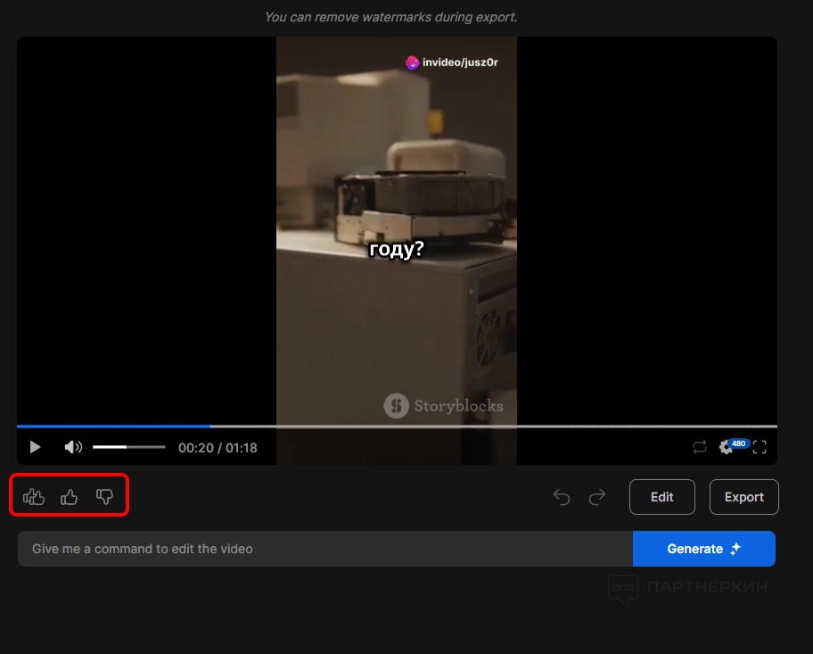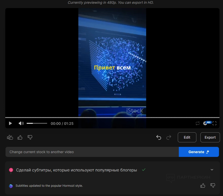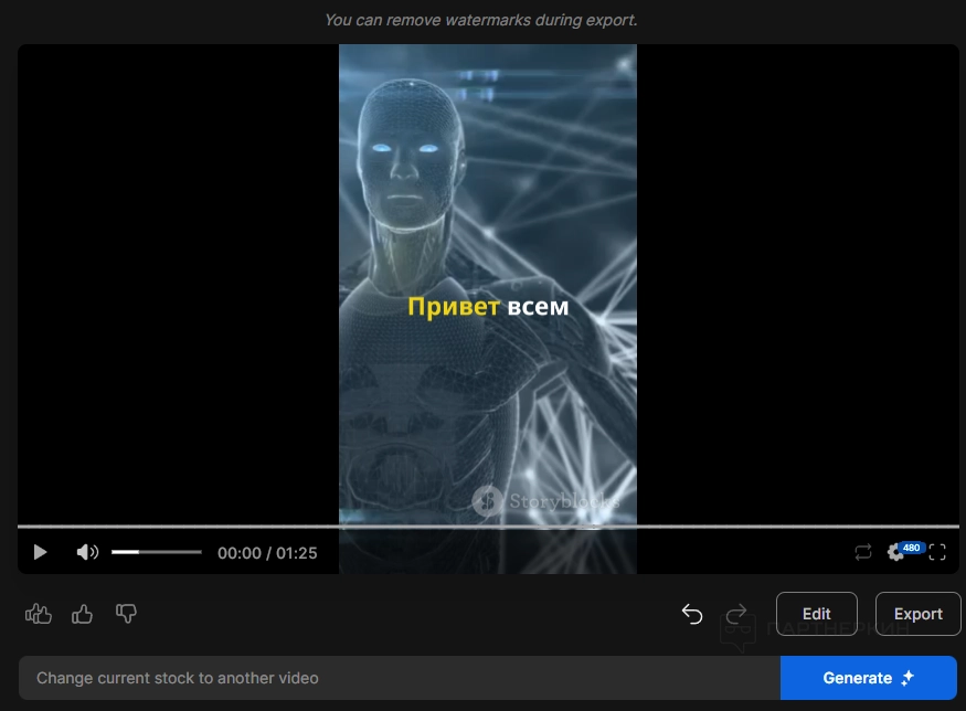 Вы можете удалять стоки, говорить нейросети, что футаж слишком длинный (и его нужно сделать короче) и многое другое. Поэкспериментируйте с этой функцией — она предоставляет широкие возможности!