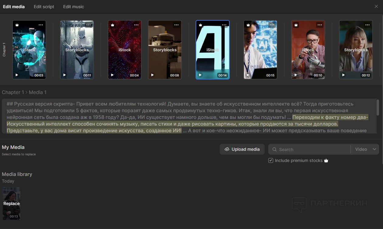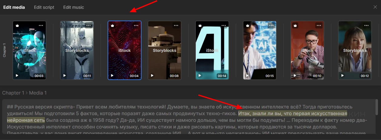 Edit media . Вверху находятся все стоки, подобранные нейросетью.