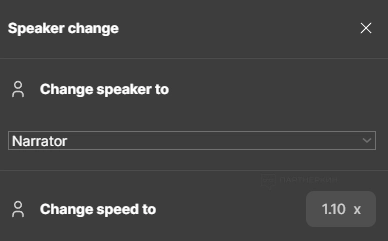 Narrator. Вы можете изменить голос спикера. На бесплатном тарифе представлено шесть вариантов (мужских и женских). Также есть возможность выбрать скорость говорения спикера.