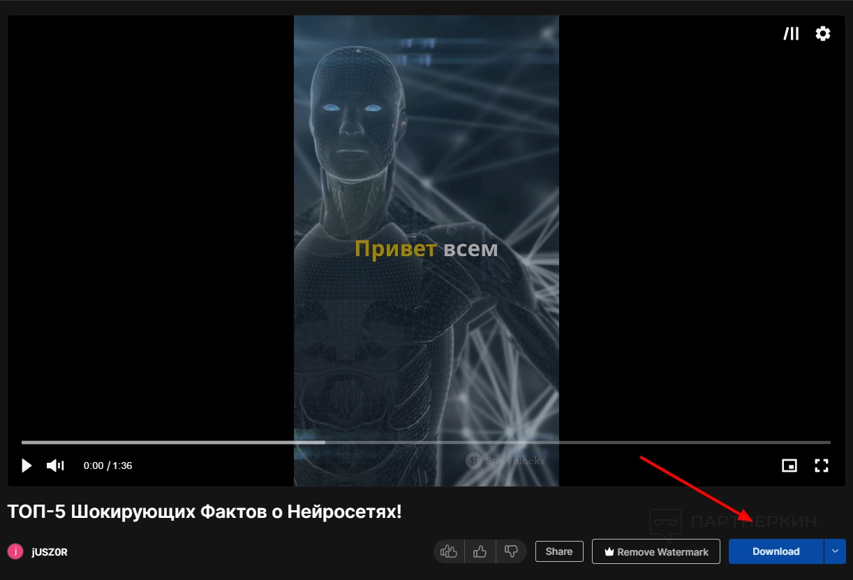 Видео скачано на устройство. Теперь его можно загрузить на YouTube Shorts (или другую площадку) и показывать аудитории.