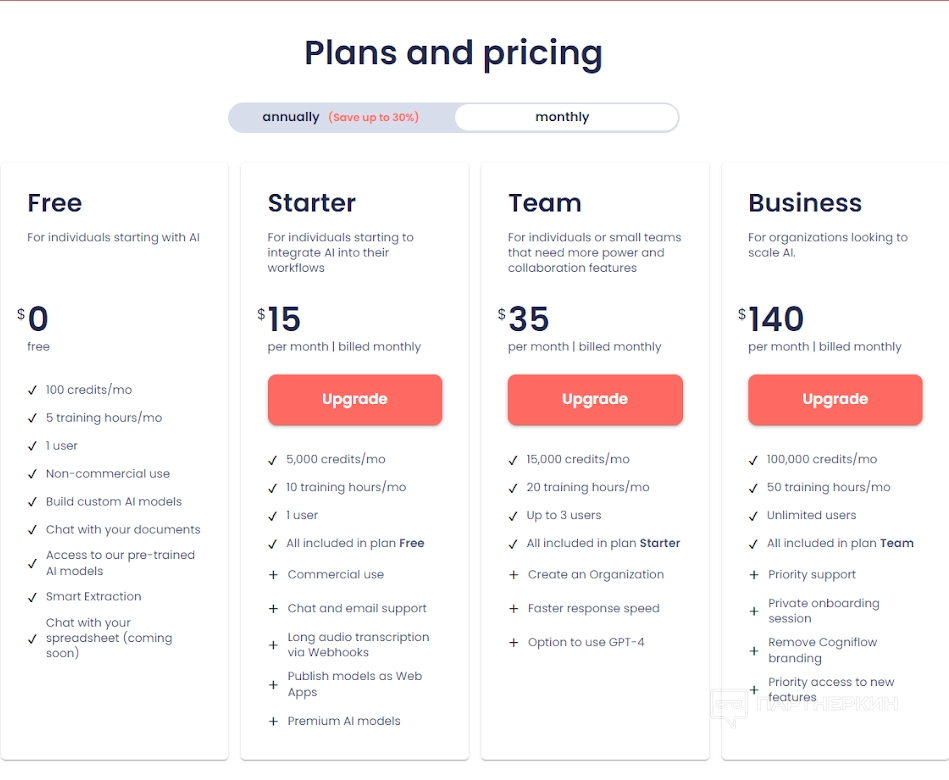 - Особенности — 100 000 кредитов в месяц, 50 часов обучения в месяц, неограниченное количество пользователей.