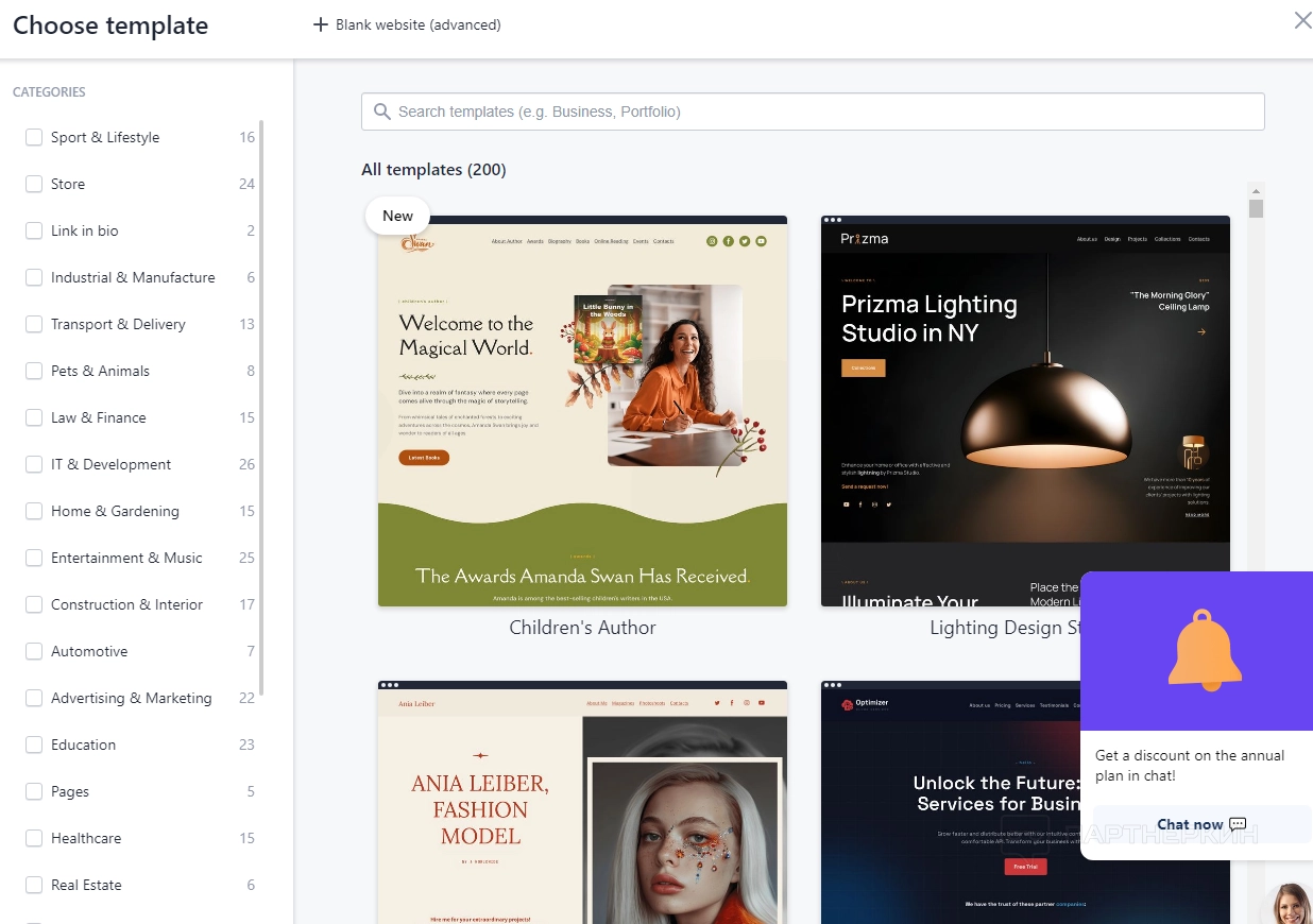 В данном разделе пользователи могут ознакомиться с разнообразием шаблонов, доступных для создания веб-сайтов.